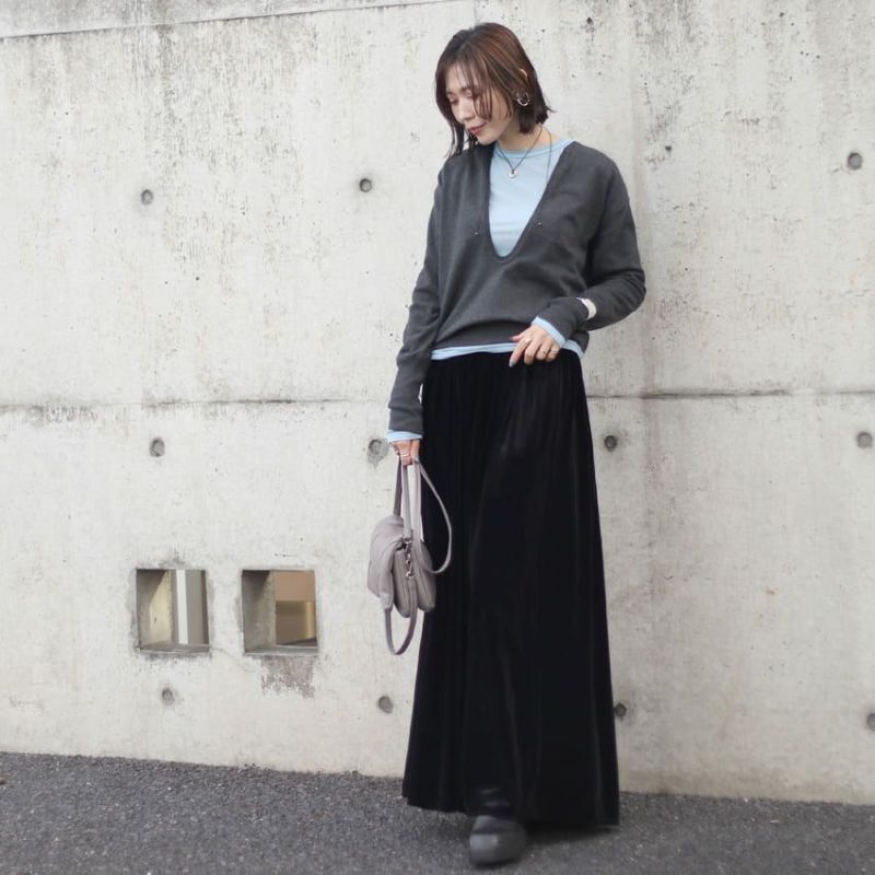 姉妹ブランドのTODAYFULでも人気の高い深めのVネックニット。