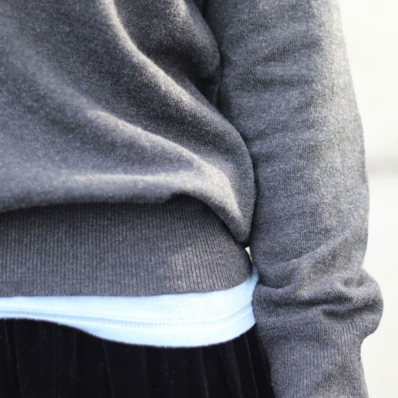 柔らかく薄手なニットを採用し重ね着に取り入れやすい作りに上げてます。