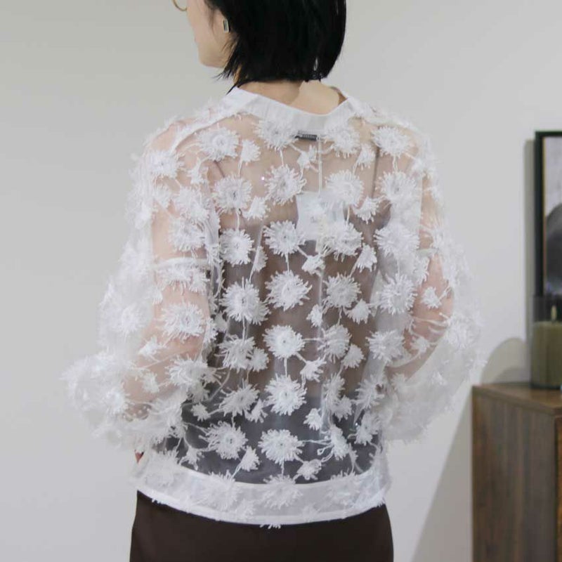 トップスとしてはもちろん、タンクトップなどの上に羽織っても可愛い一枚です。