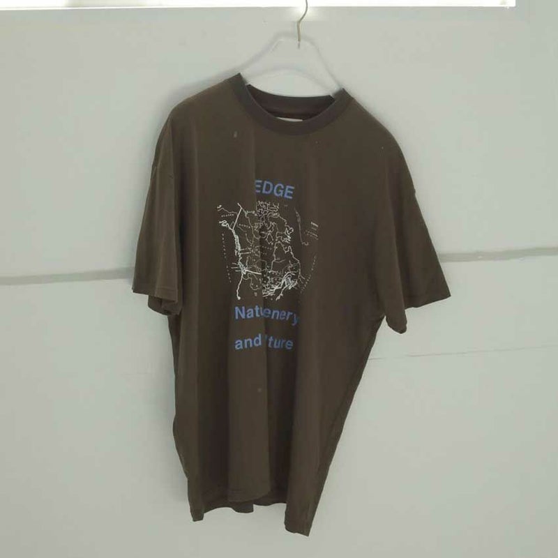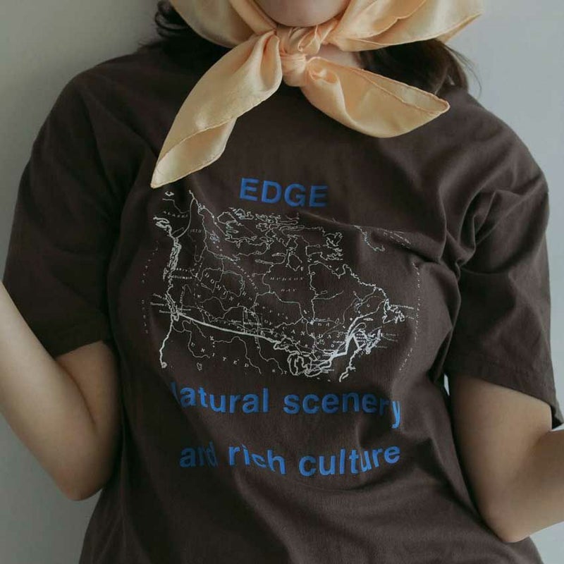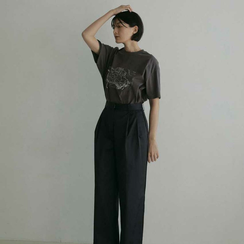 繊細なラインのマップ柄がスタイリングのポイントになるプリントTシャツ。