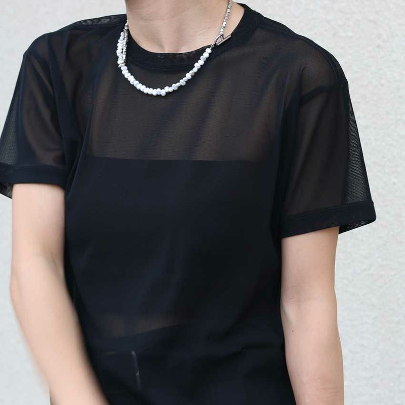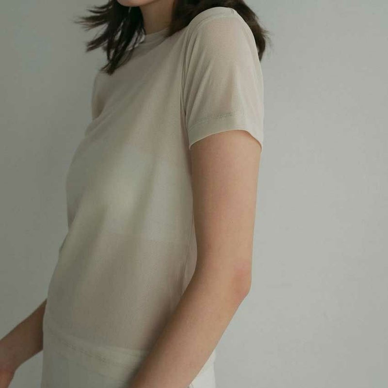 女性らしさを引き立てる、シアーチュールのコンパクトTシャツ。