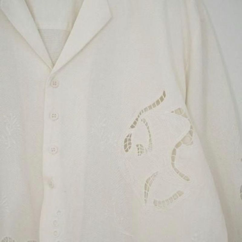 カットワーク刺繍が印象的なインド製の開襟シャツ。