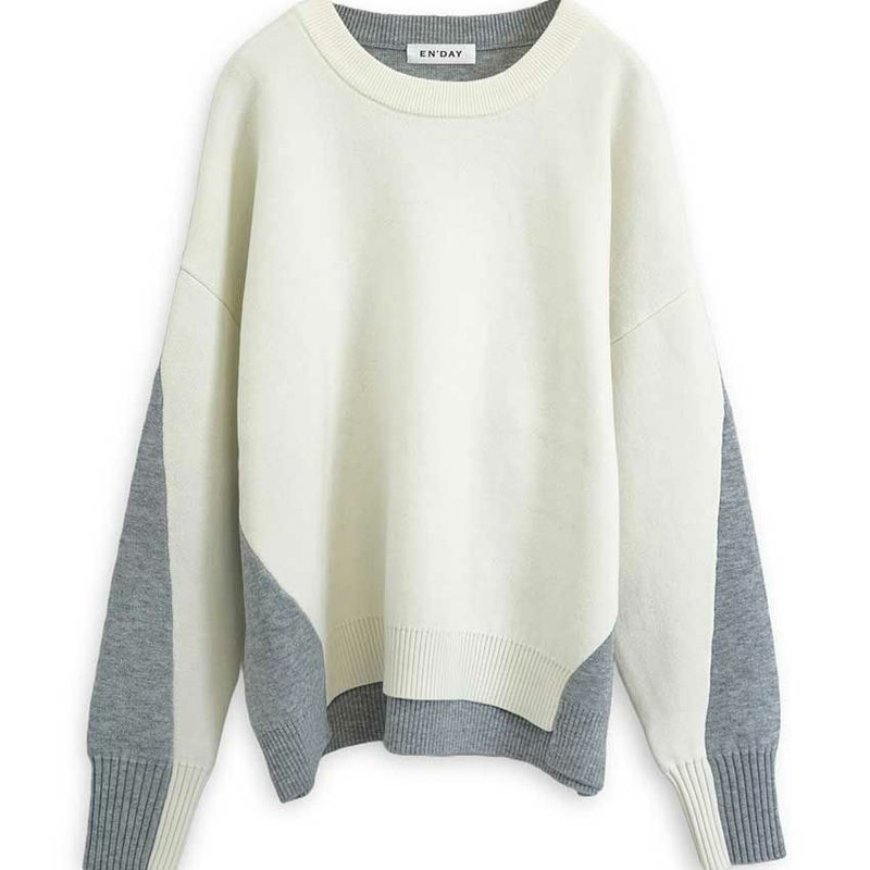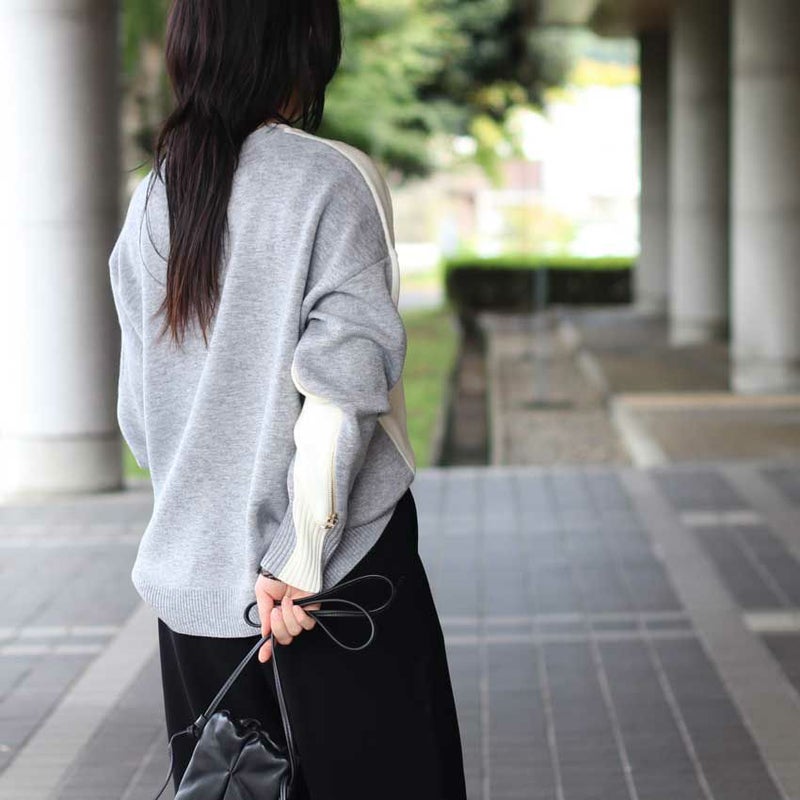 洗練された印象を魅せてくれるバイカラープルオーバー。