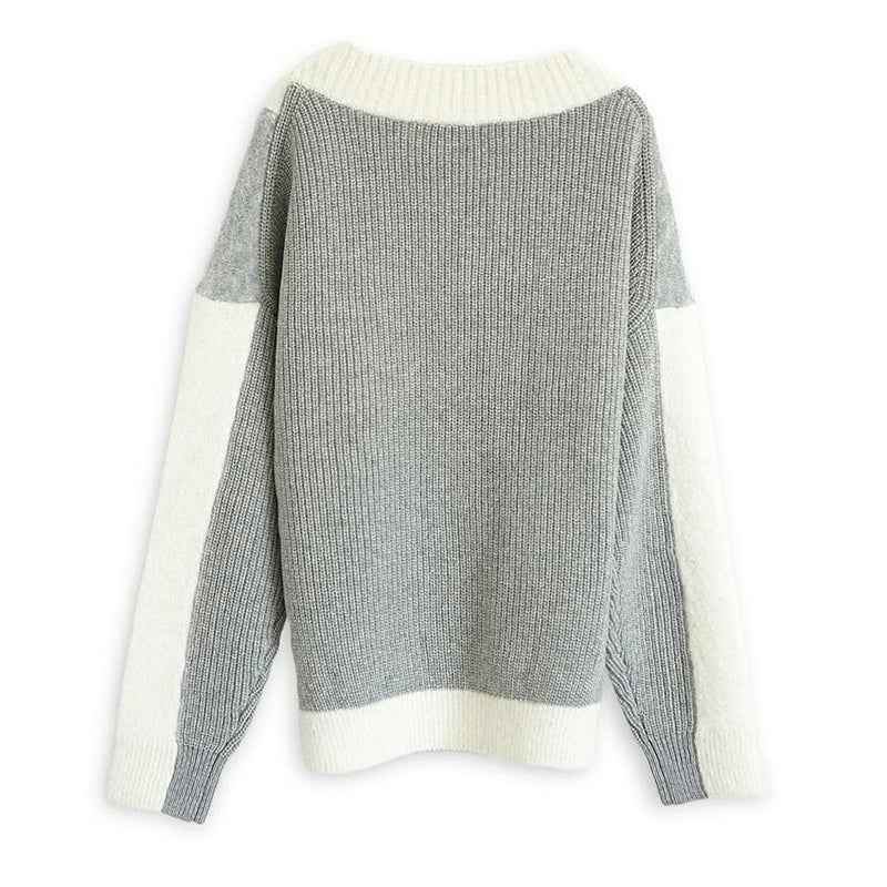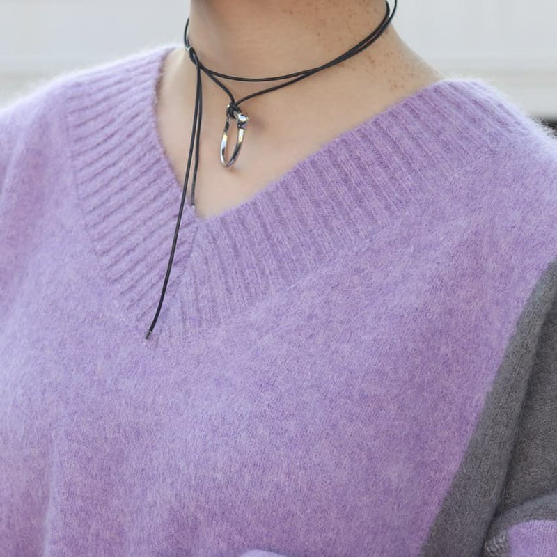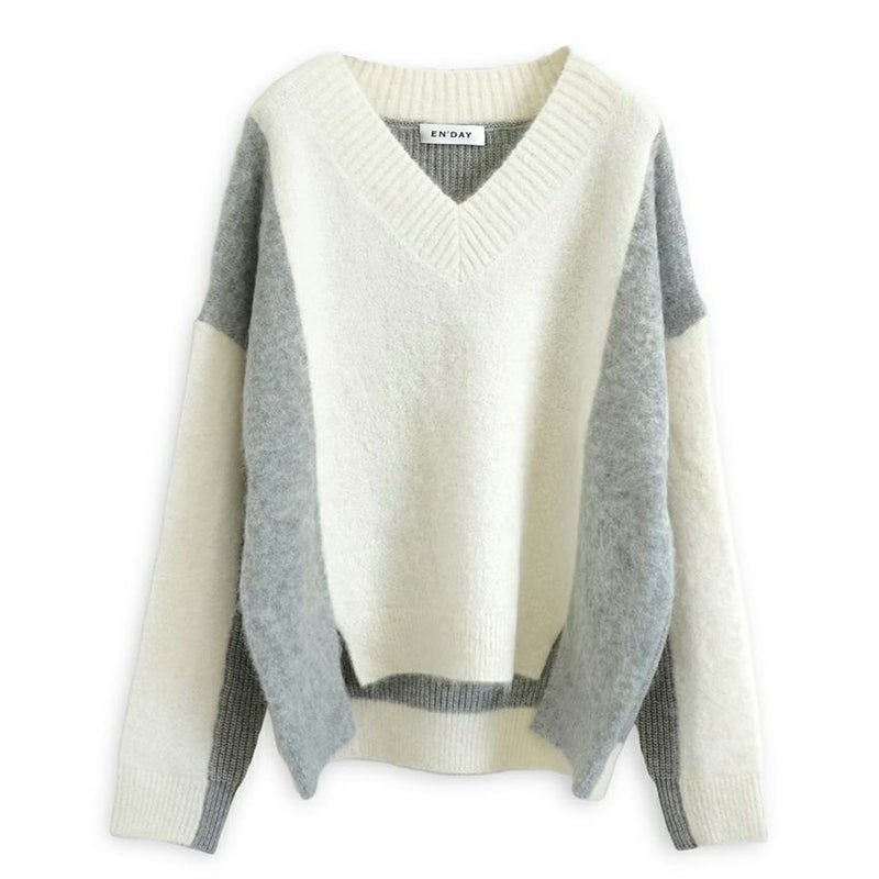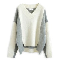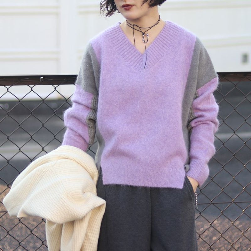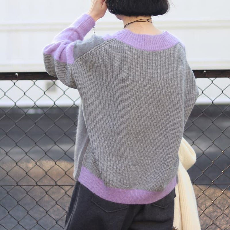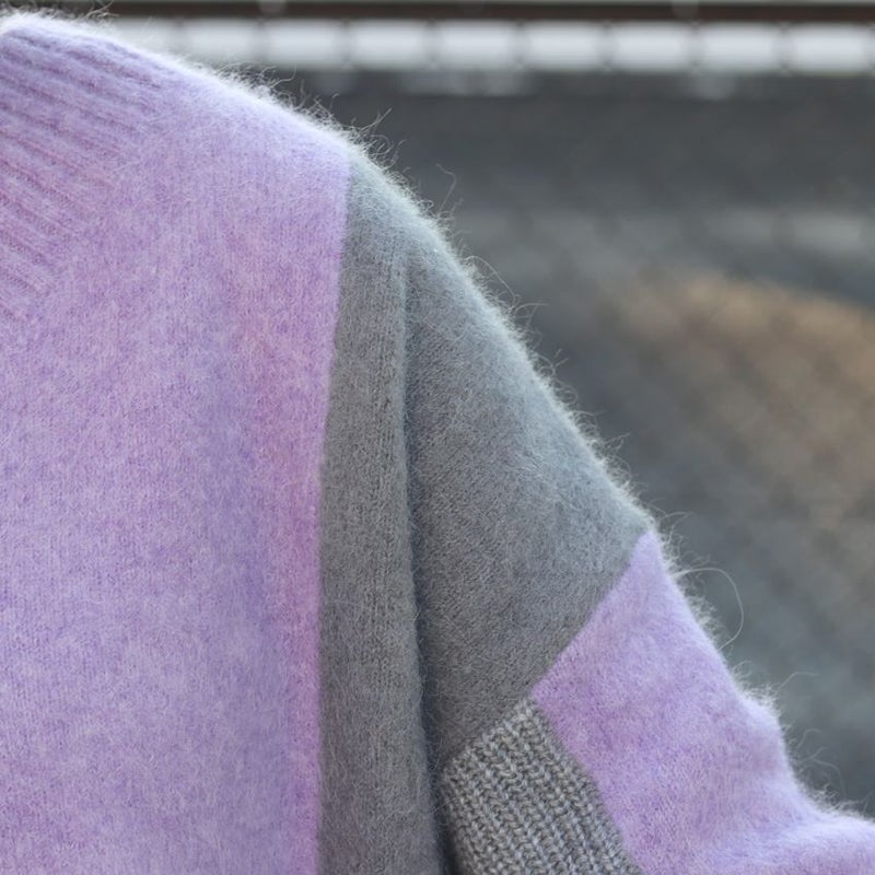 動くたびにドラマチックな表情を見せる、アルパカシャギーのカラーブロッキングニット。