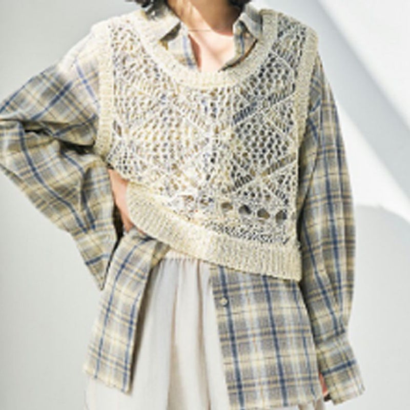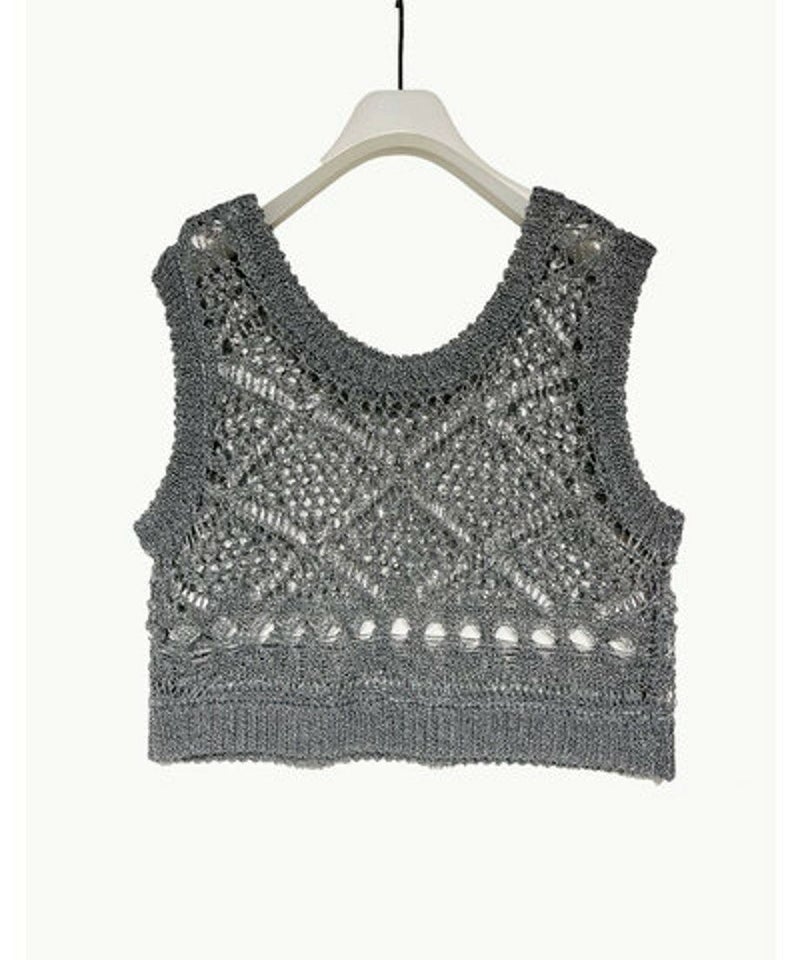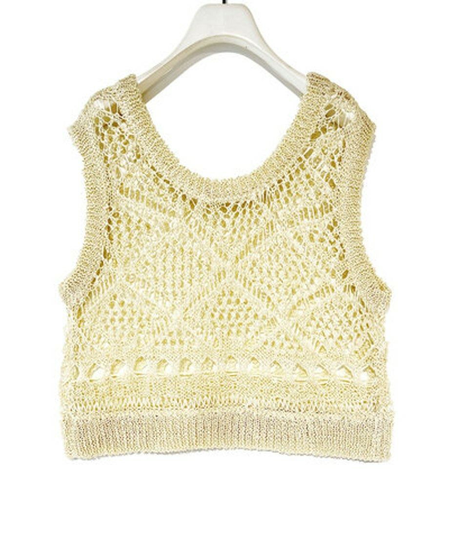 春夏にオススメなスカシ柄編みチビベストです。