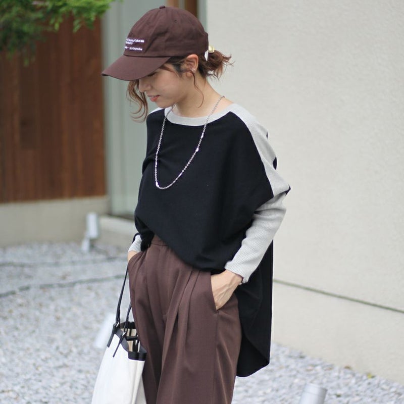 ショルダーにリブラインをあしらったスポーティなデザイントップス。 柔らかく落ち感のある素材感は着心地よくストレスフリーに着て頂けます。 オーバーなつくりなので、腕、おなか、腰回りをカバーしてくれるのも魅力の一つ。 シンプルながら着まわしの効く一着で、デニムやスカートでシンプルに合わせるのもいいですし、今期トレンドのカーブパンツなどと合わせるのもおすすめです。