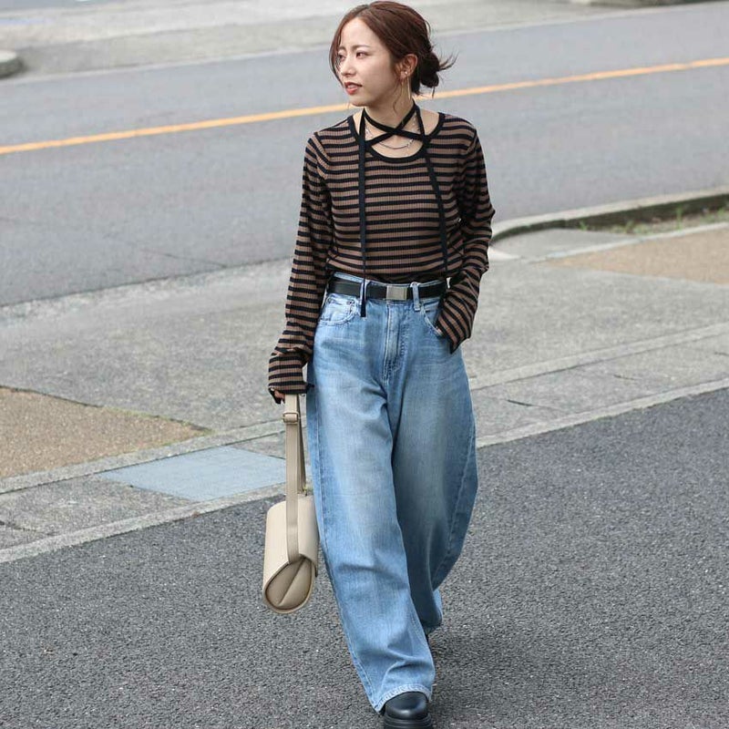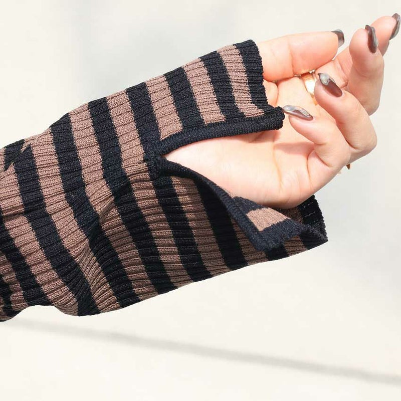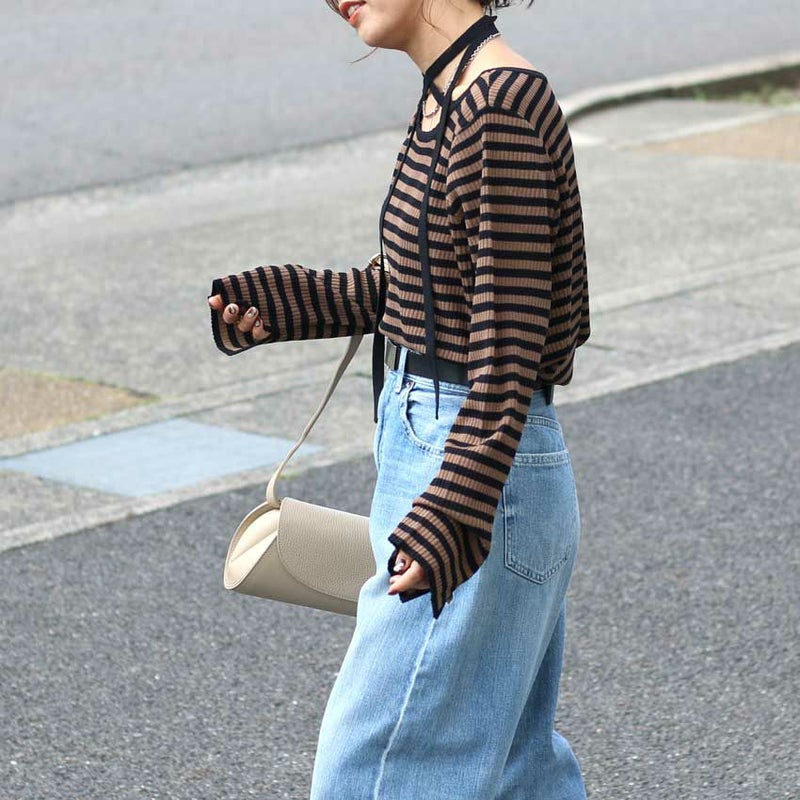リブ風に見えるシルエットを拾わない編地で、ゆったりとしたサイズ感で作っています。