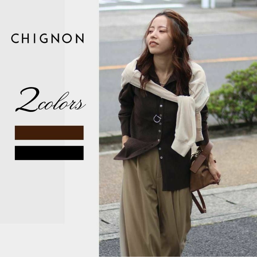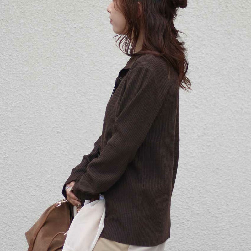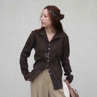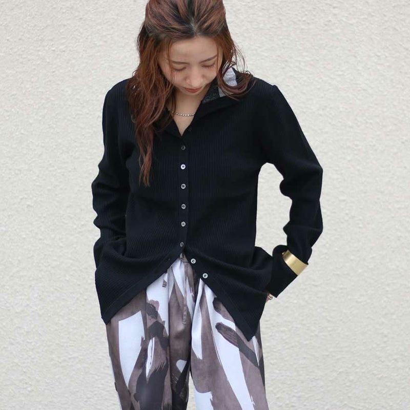 さらに身頃はリブ見えの編地でボディラインを拾いにくく、1枚でもきれいなシルエットをキープ。