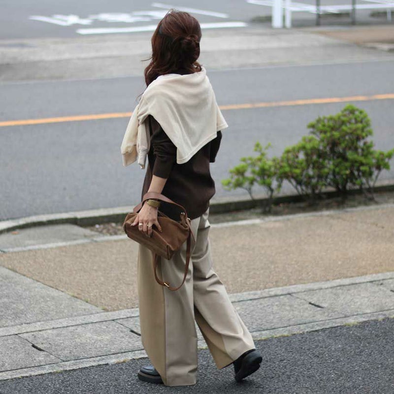 シンプルながら、着回し力とスタイルアップを両立した大人の万能ニットです。