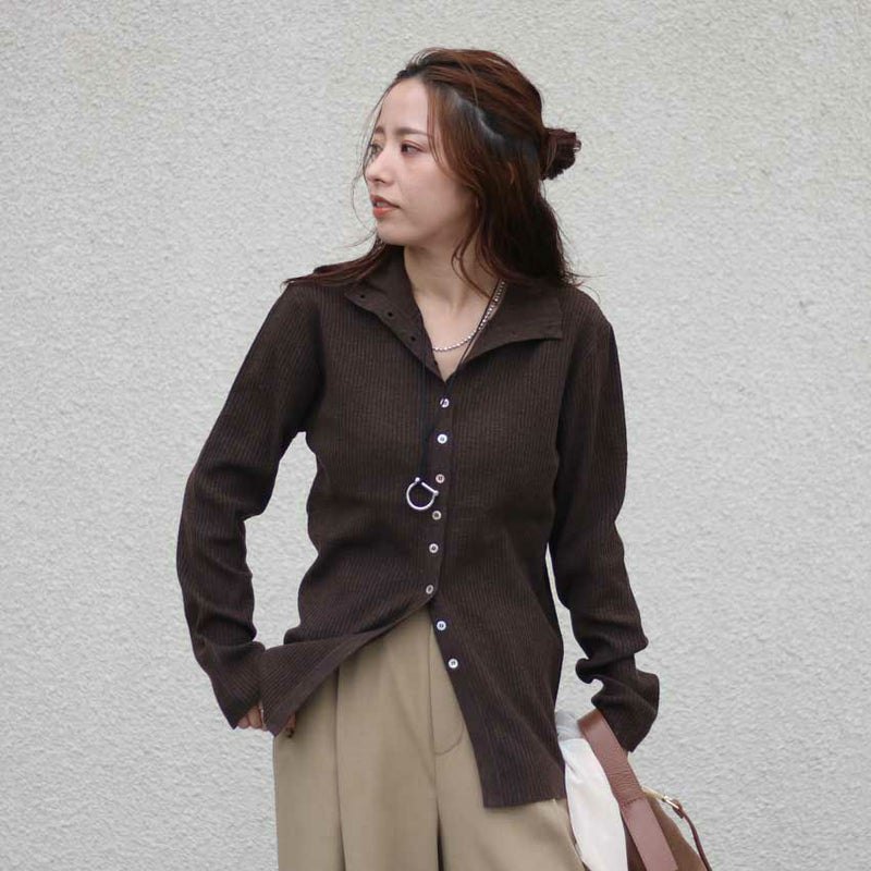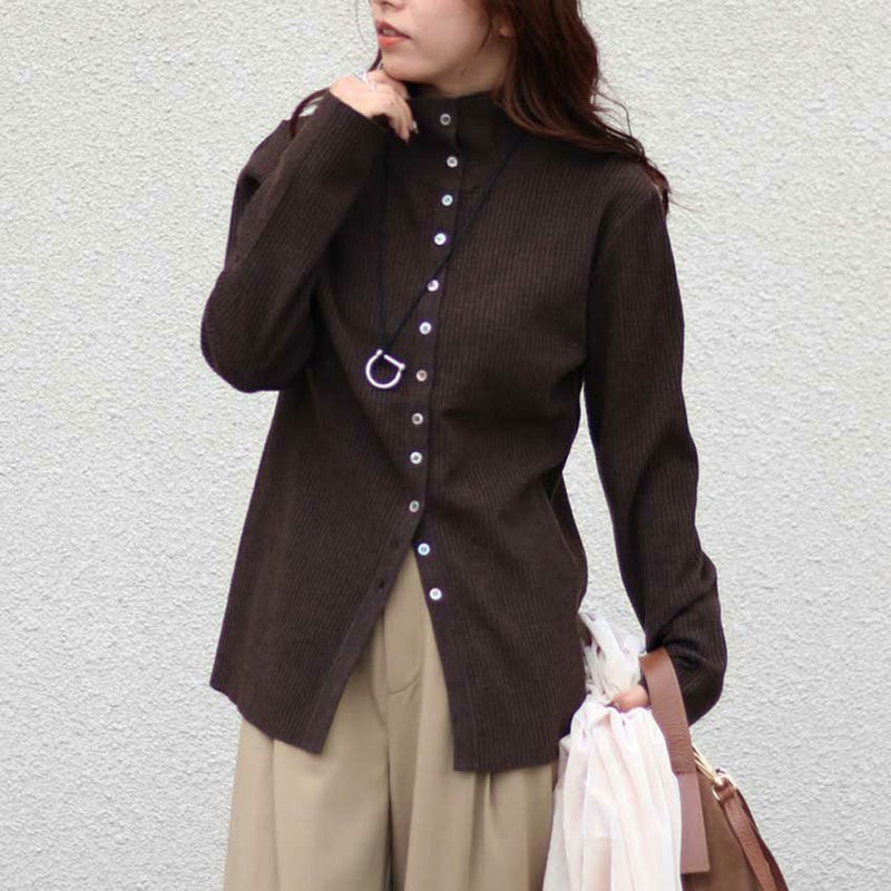 衿のボタンを開ければシャツのような着こなしに、前後を逆にすれば定番のタートルネックとしても楽しめます。