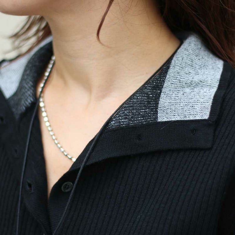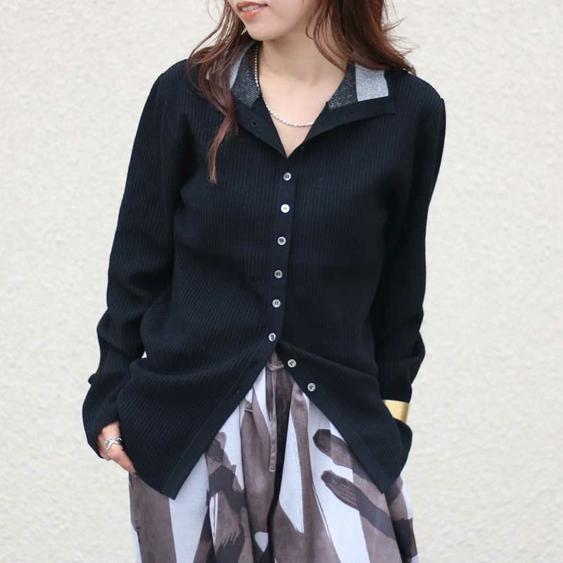 BKは衿に配色デザインを施しているので、シャツやワンピースのインに合わせるだけでコーディネートが新鮮に。