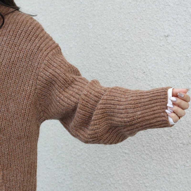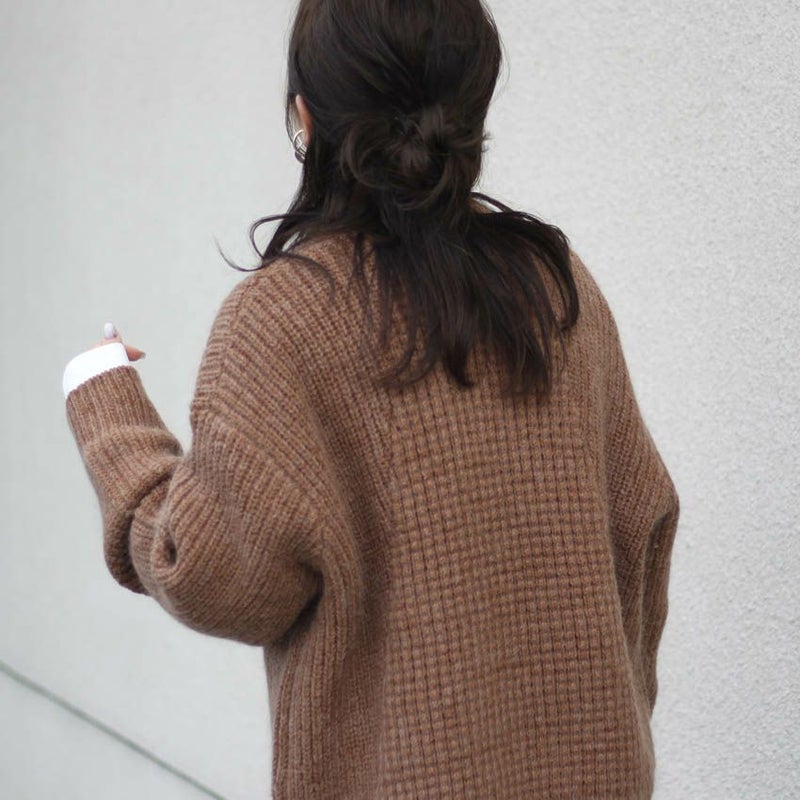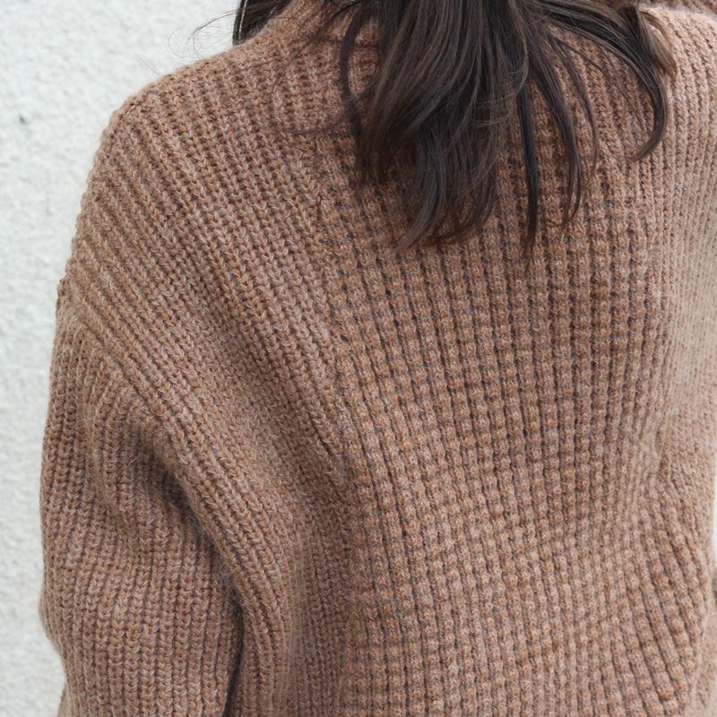 『ワッフル編み×片畦編み』の2種類の編地を活かした存在感のあるニットです。