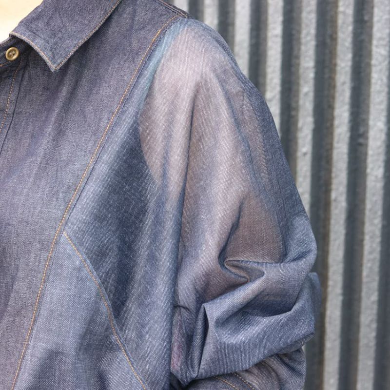 一方で、身頃やふんわりとしたボリューム袖には、軽やかなシアーデニムを使うことで、ブラウスのような上品な表情をプラスしました。