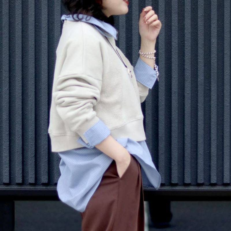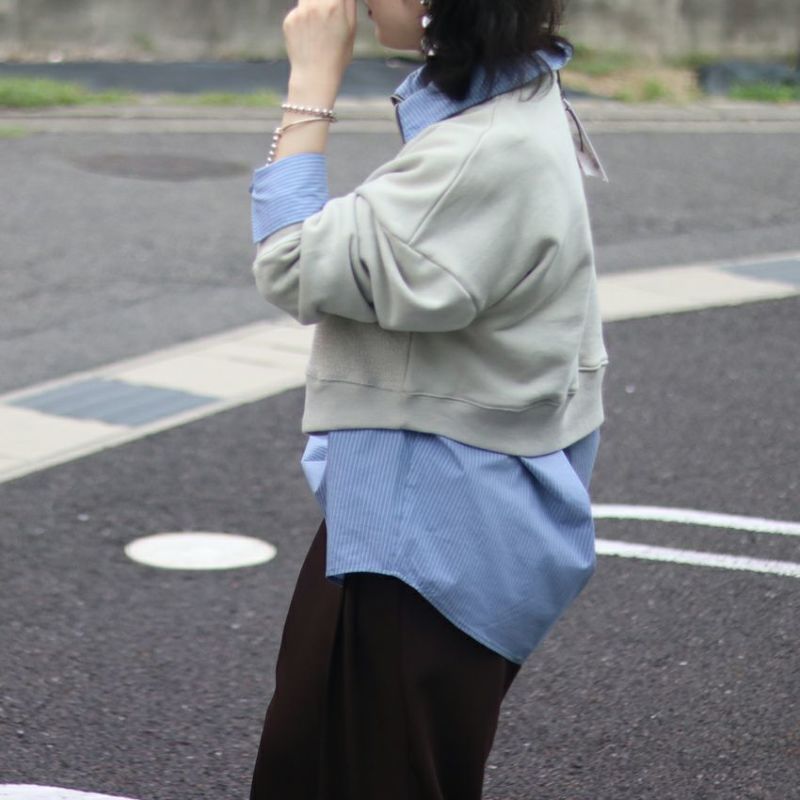 ゆったりとした長めの袖と、コンパクトなクロップド丈の絶妙バランスがコーデに新鮮さをプラスします。