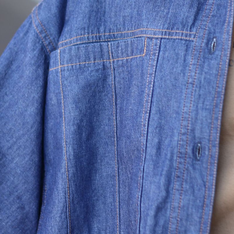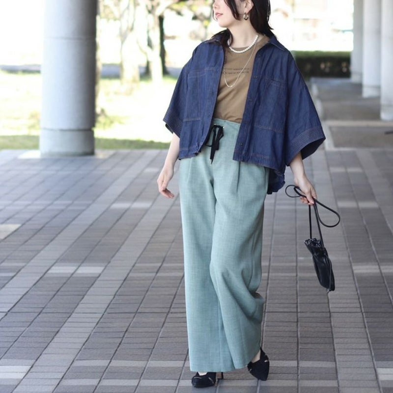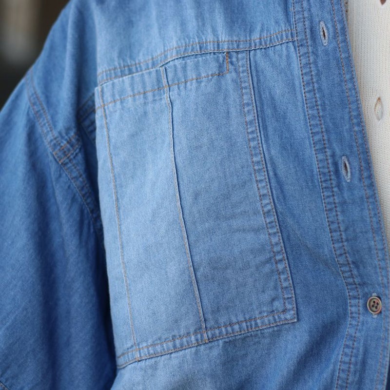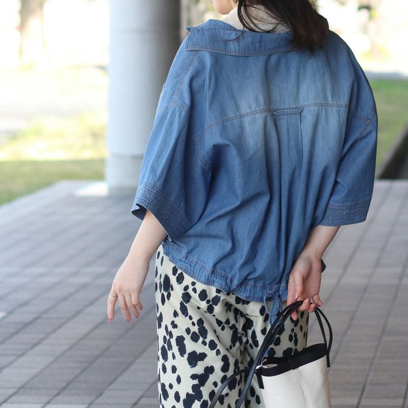 薄手のデニムブラウスは、インナー次第で春から秋まで活躍します。