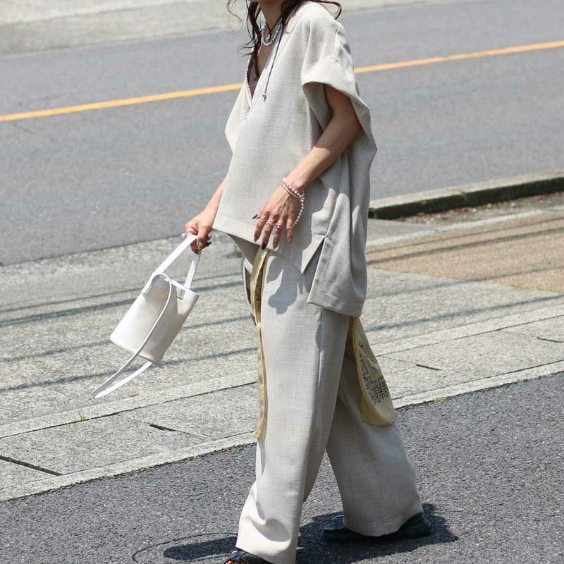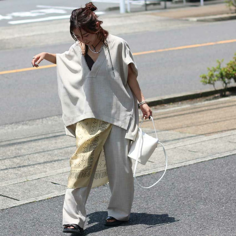 ・麻のようなナチュラル感と、ドライな風合いの生地。