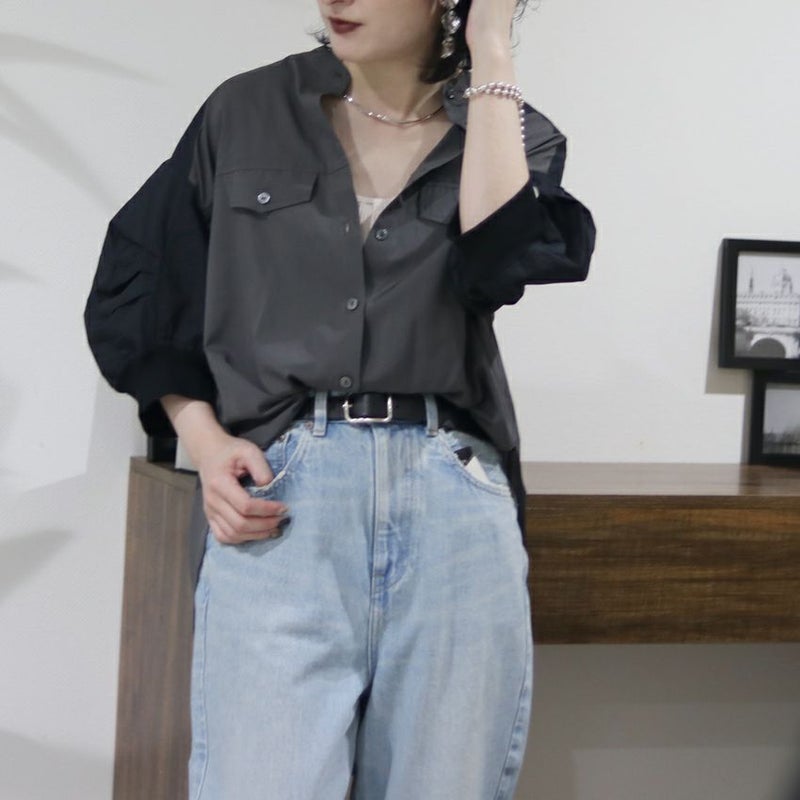 異素材の組み合わせが目を惹く、洗練された大人のためのブラウス。