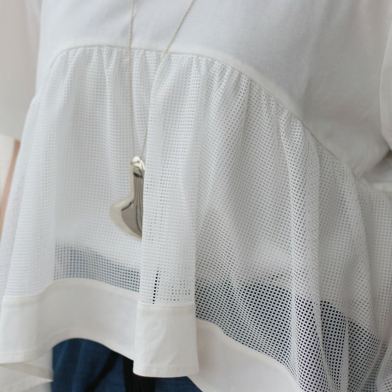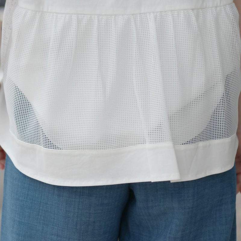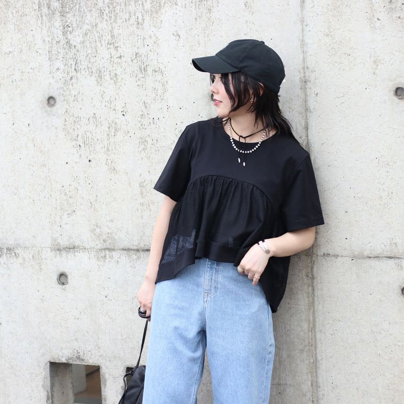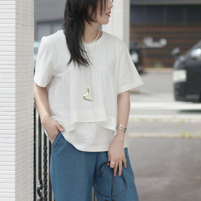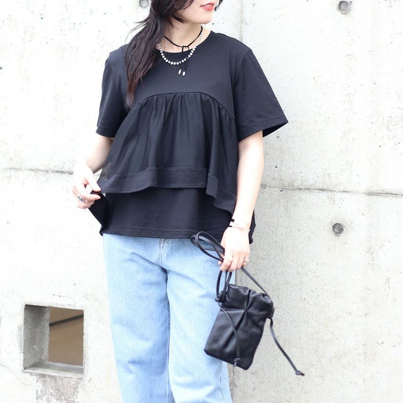 涼しげで軽やかな、注目のメッシュフリルカットソー。