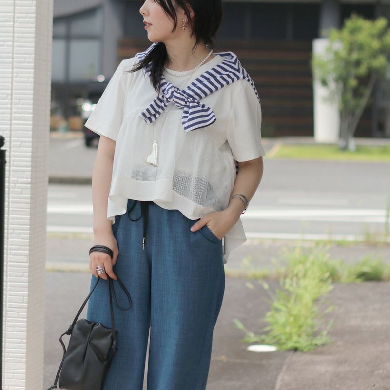 また、ボトムスにインしてクロップド丈にすれば、違った雰囲気で着こなすこともでき、シーンに応じて幅広いスタイルを楽しめます。