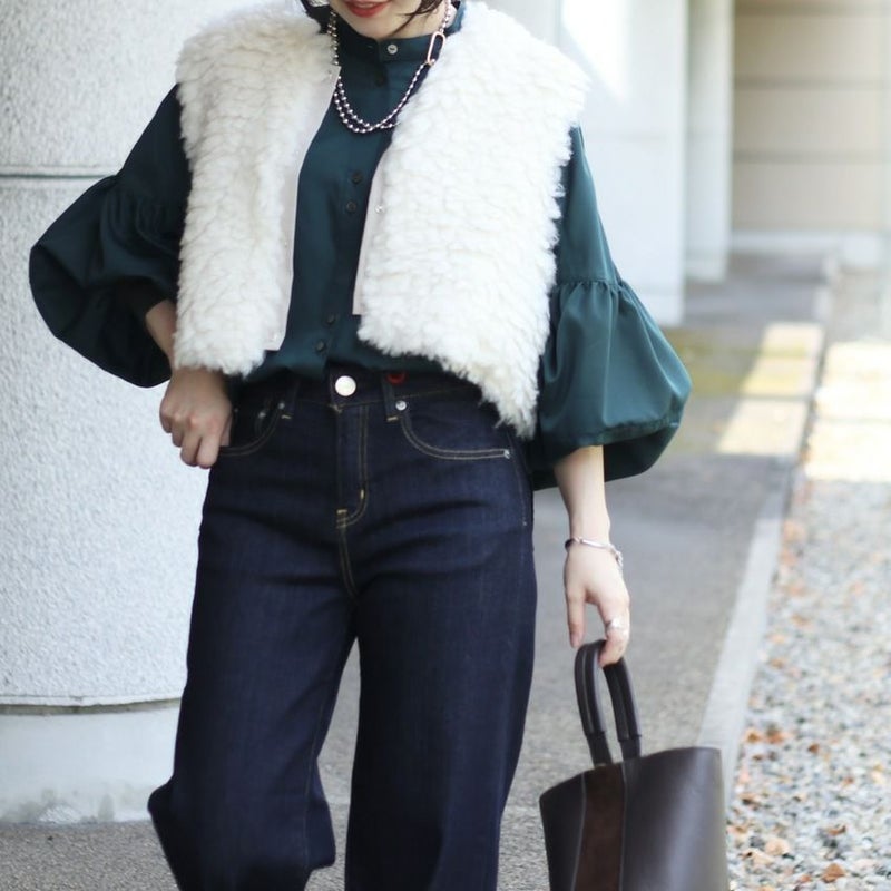 ベストと合わせたレイヤードスタイルや、シアートップスをインナーに取り入れたコーディネートも楽しめます。
