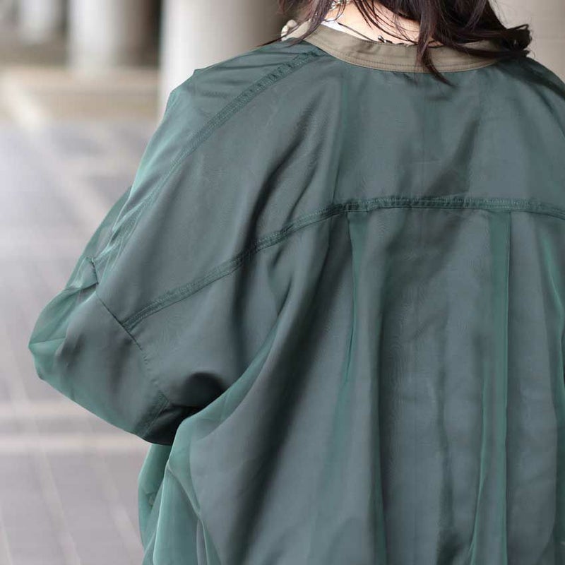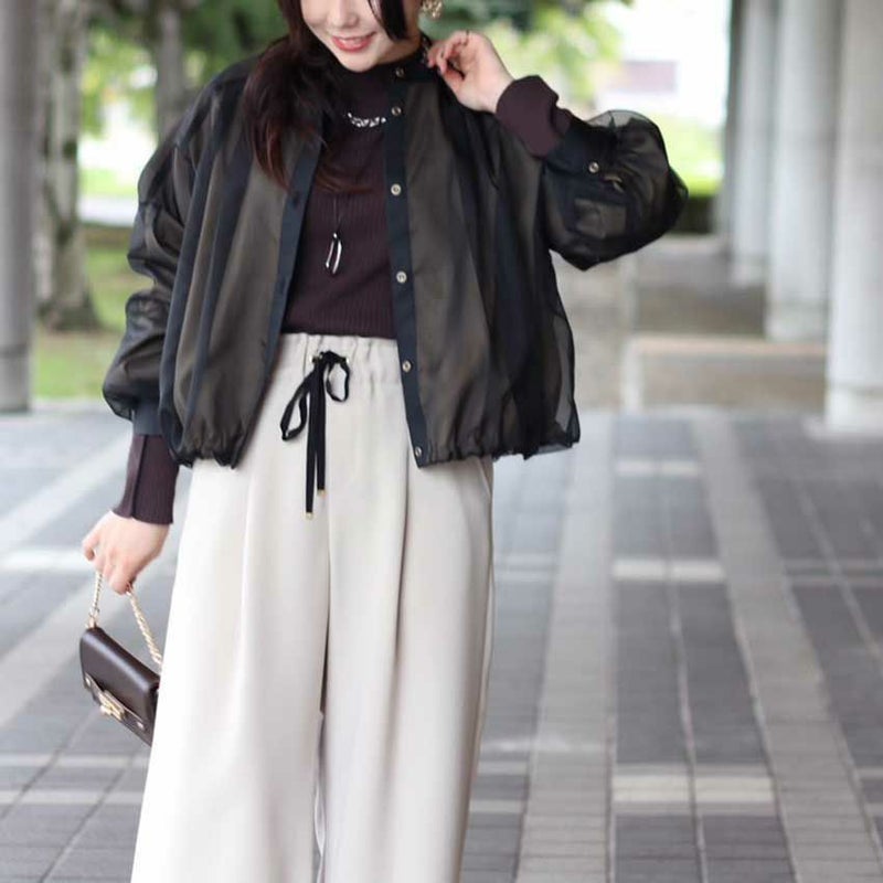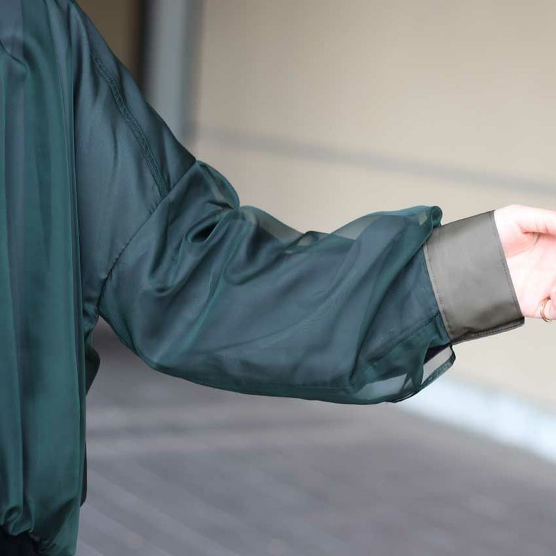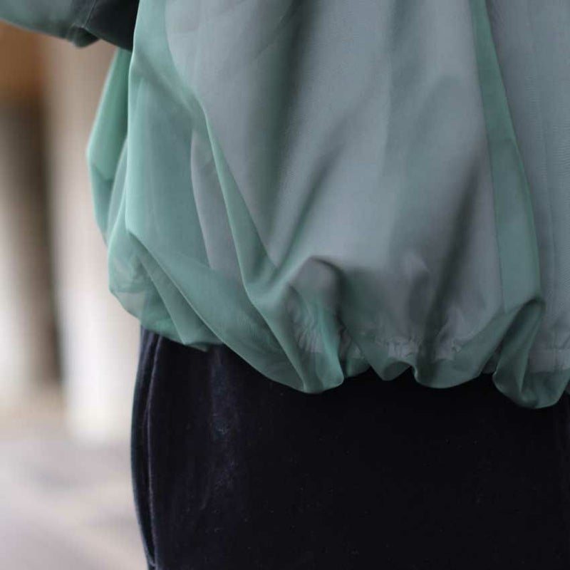 マットオーガンジーをレイヤードし、撥水・透湿性に優れたパウダータフタを贅沢に2枚仕立て。
