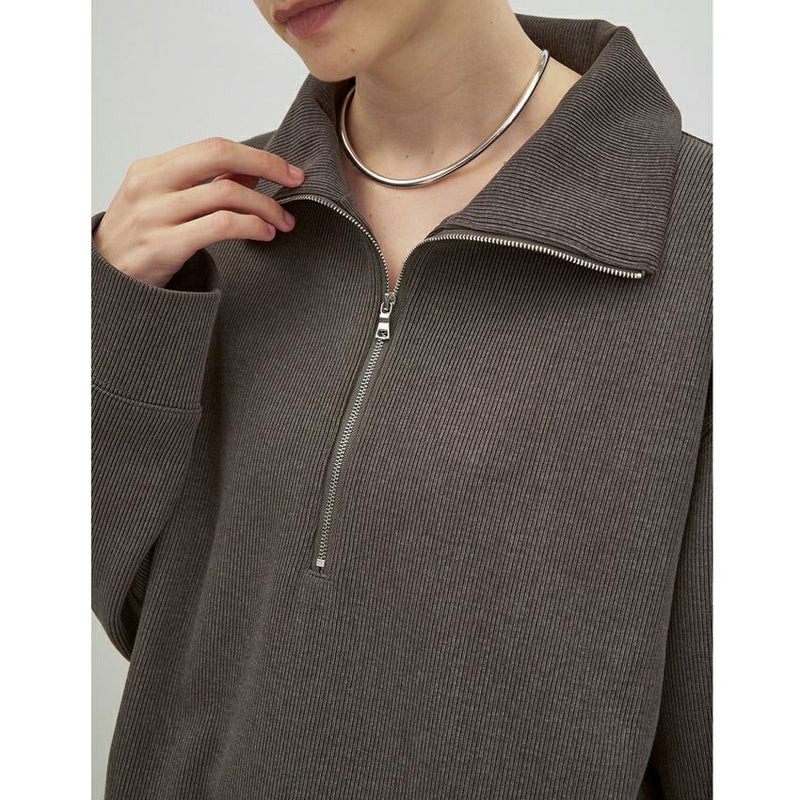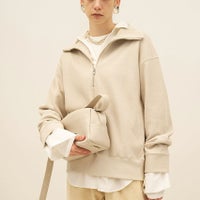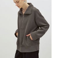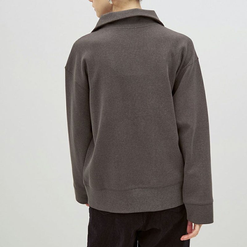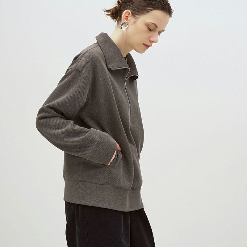 色褪せたような加工感がポイントの、しっかりと目の詰まったリブを使用したハーフジッププルオーバーです。