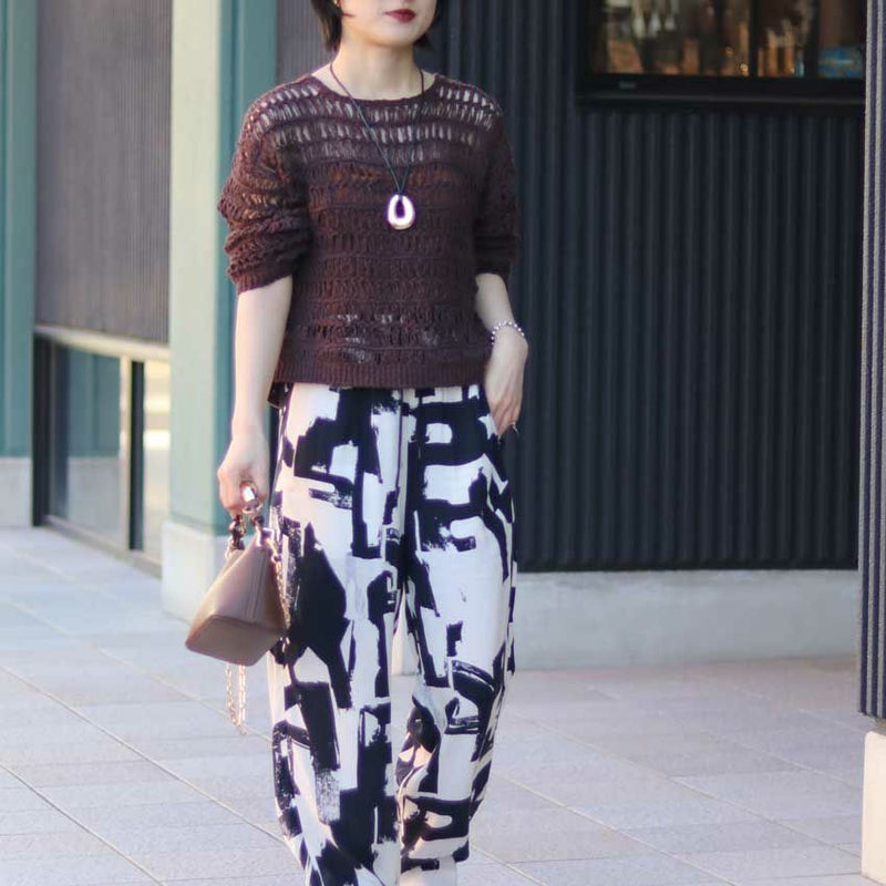 クラフト感を引き立たせるコットンスラブヤーンを使用し、表情のある編地が特徴です。