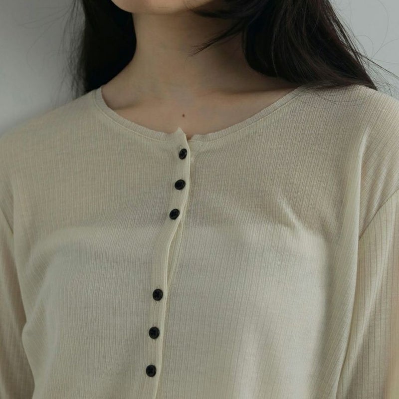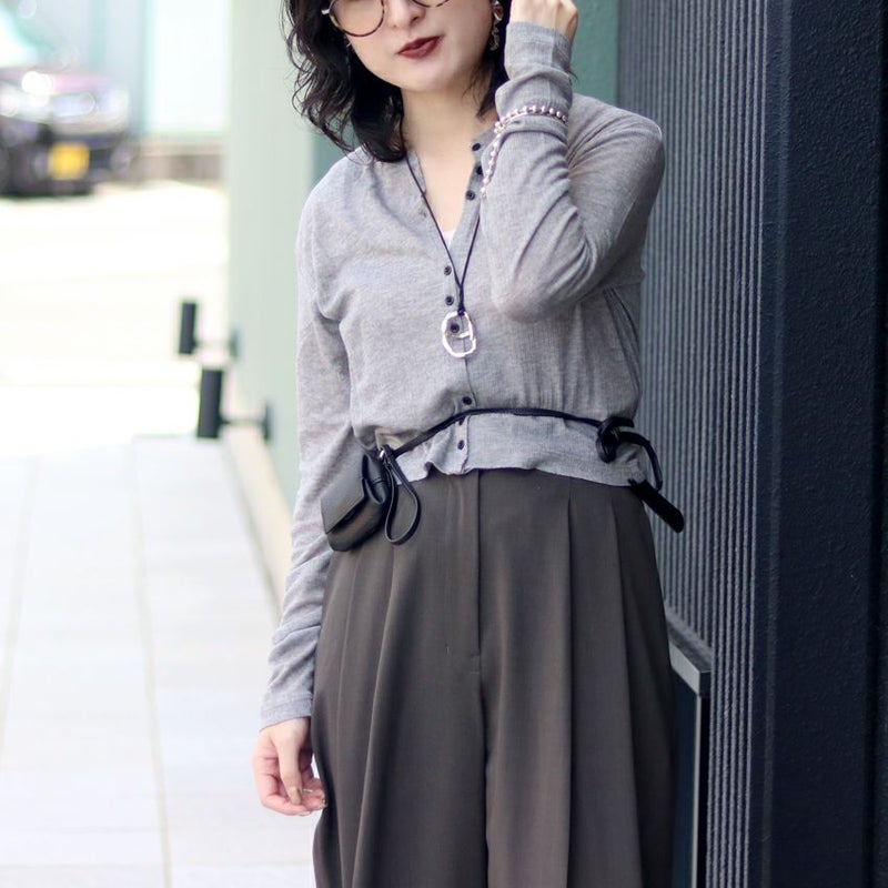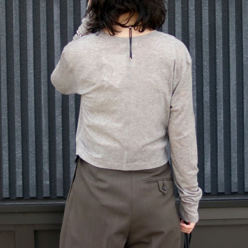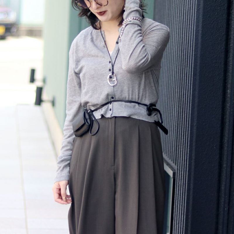 柔らかな薄手のカットソーリブ素材を使用したコンパクトなカーディガン。