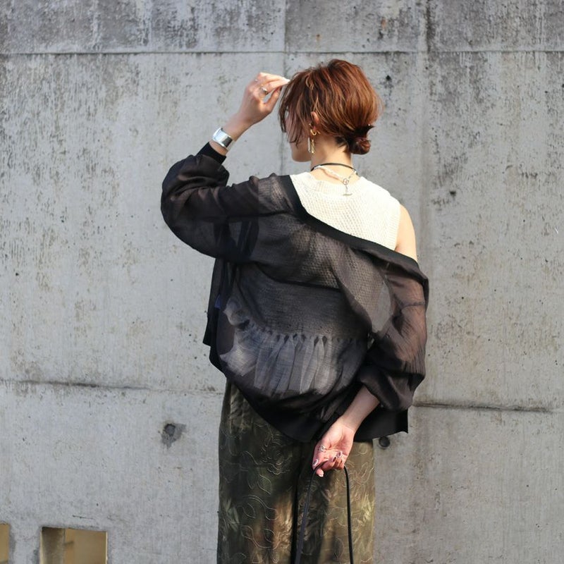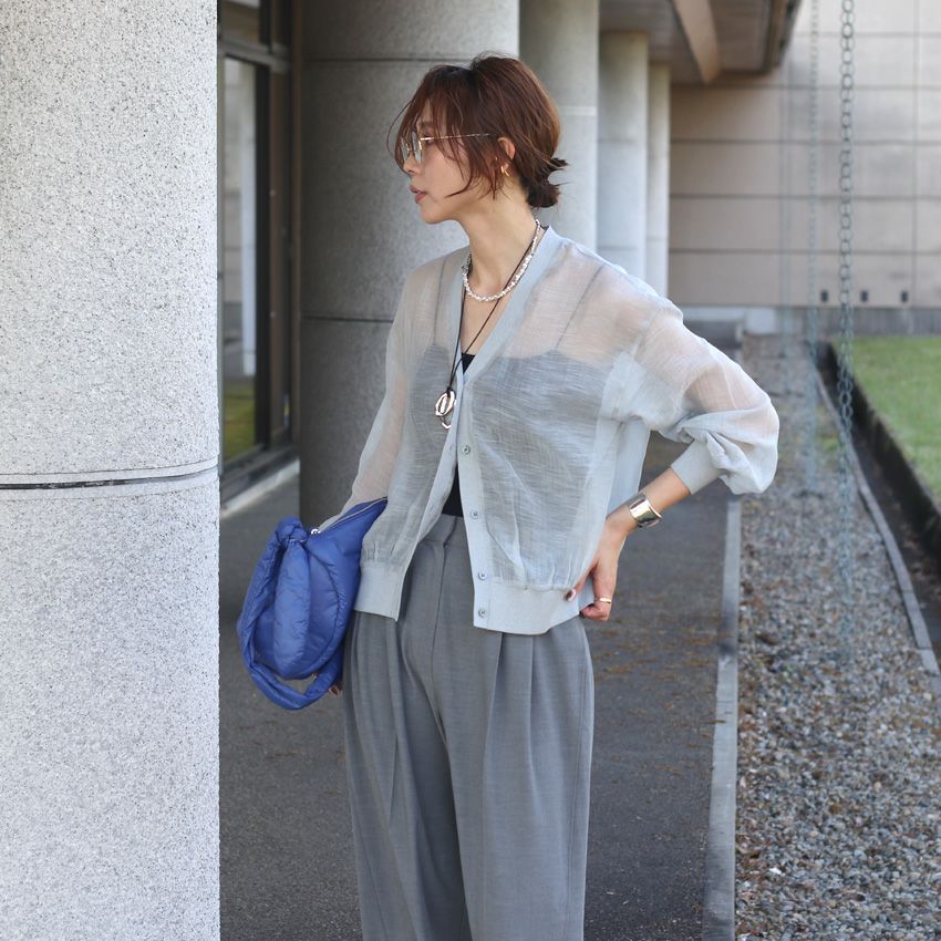 CHIGNON/シニヨン 布帛ドッキングカーディガン 9552-212NH カーディガン アウター 春アウター シアー 楊柳