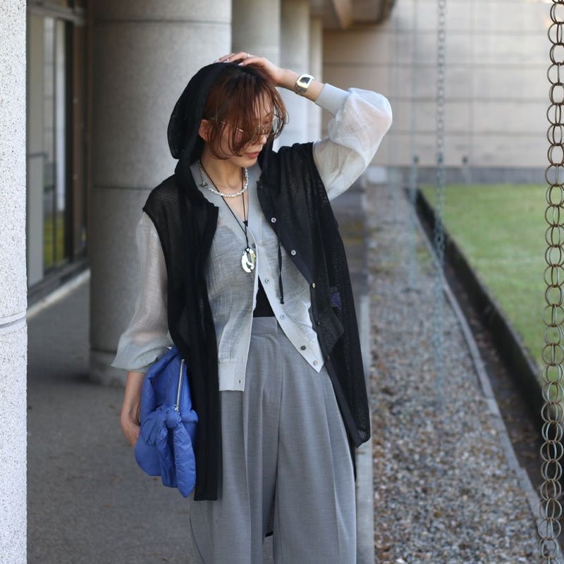 通気性のよい素材で、真夏の外出も快適にお洒落を楽しめる1着となっています。