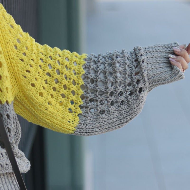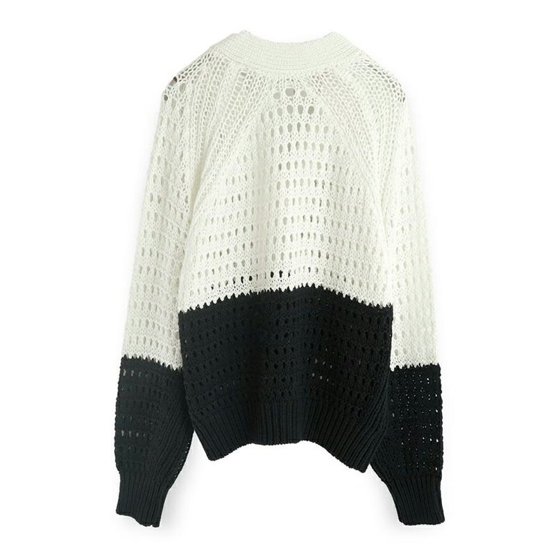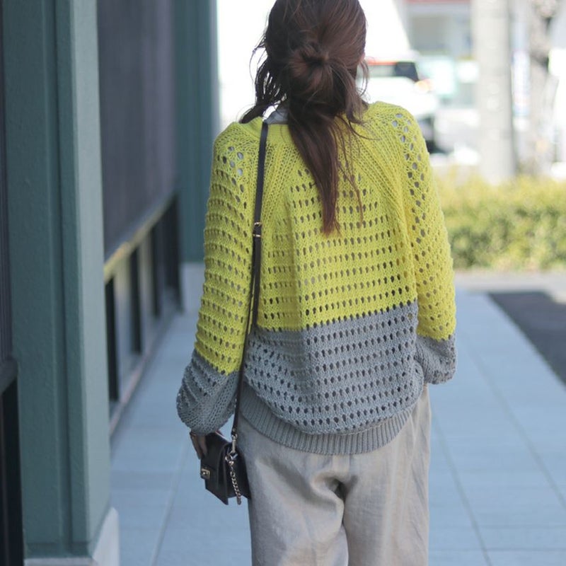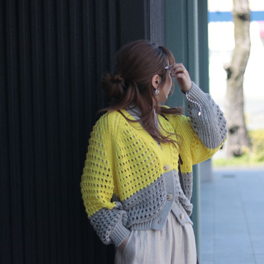 涼やかな編地が醸す柔らかな雰囲気を、大胆なバイカラーのデザインがモダンに演出。