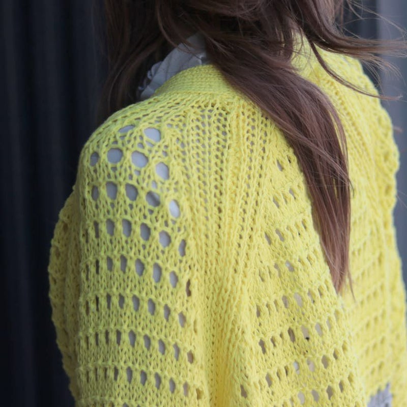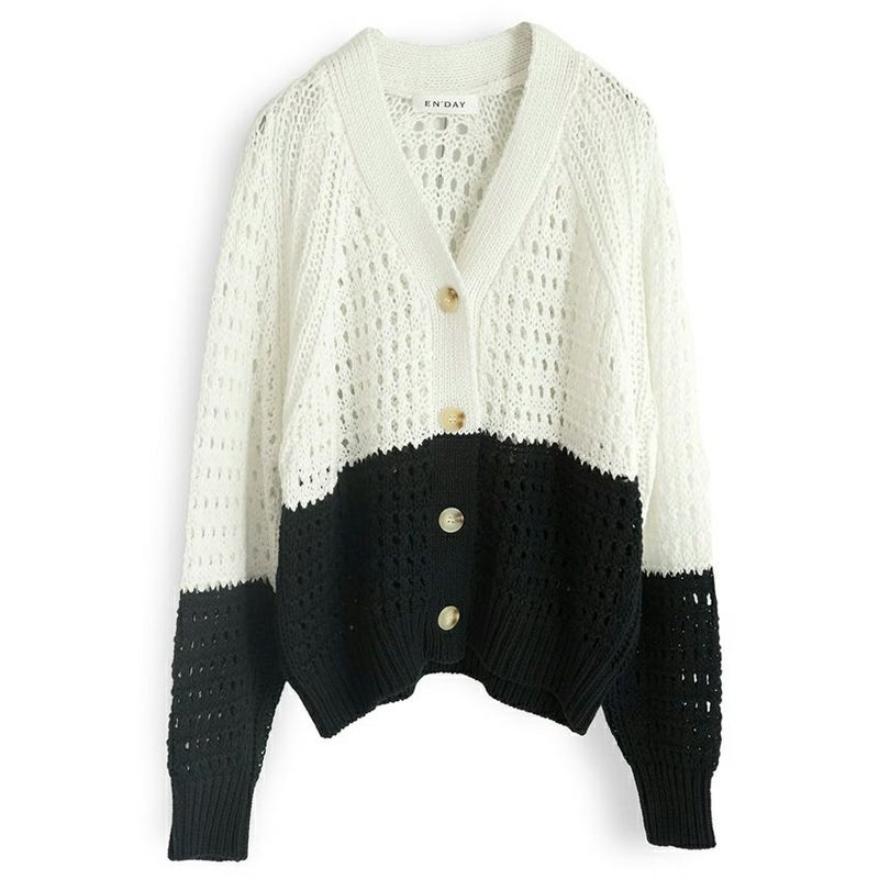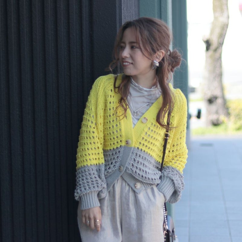 EN'DAY/エンデイ バイカラーメッシュカーディガン 8241-0205 サマーニット メッシュニット 袖コンシャス かぎ針編み ショート丈