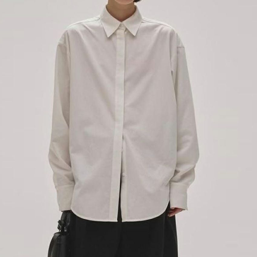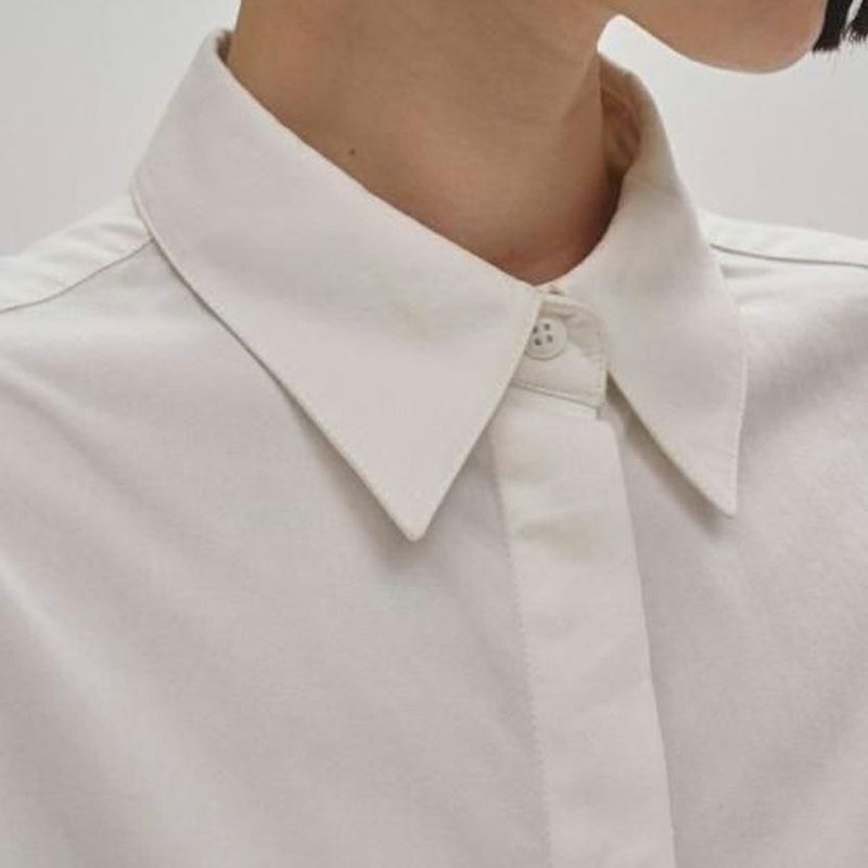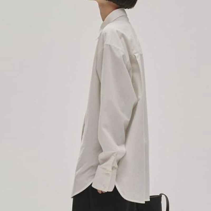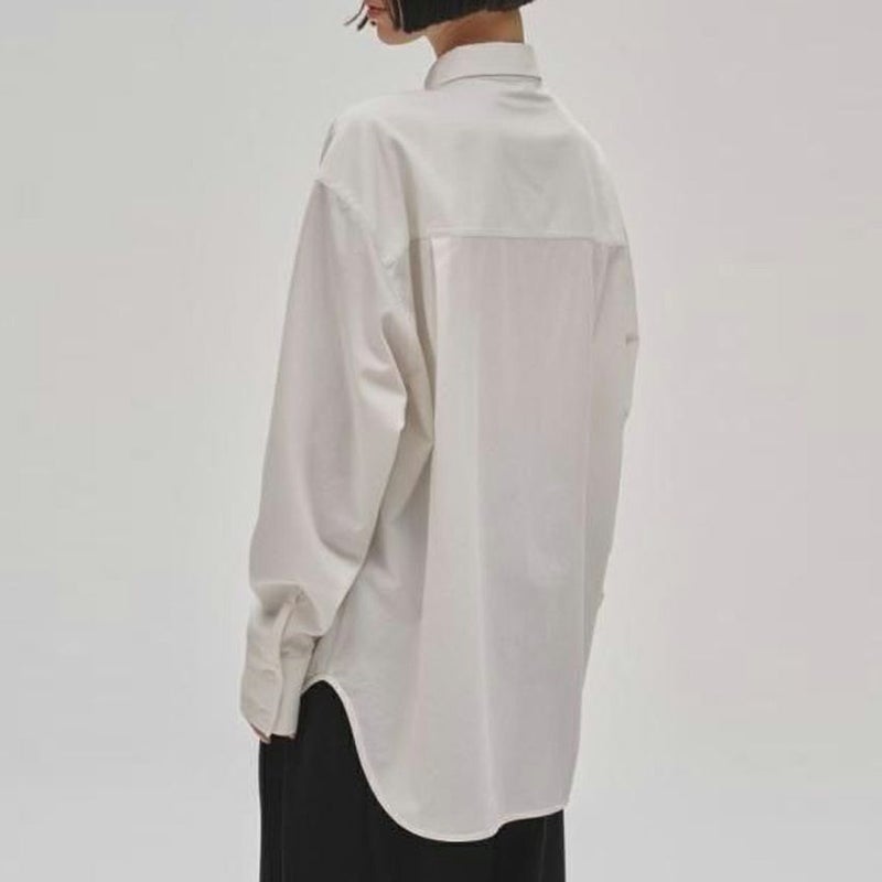ボトムスのシルエットを選ばず、様々なスタイリングに馴染むアイテムです。一枚でさらっと着るのはもちろん、インしてベルトを効かせたマニッシュな着こなしもおすすめです。