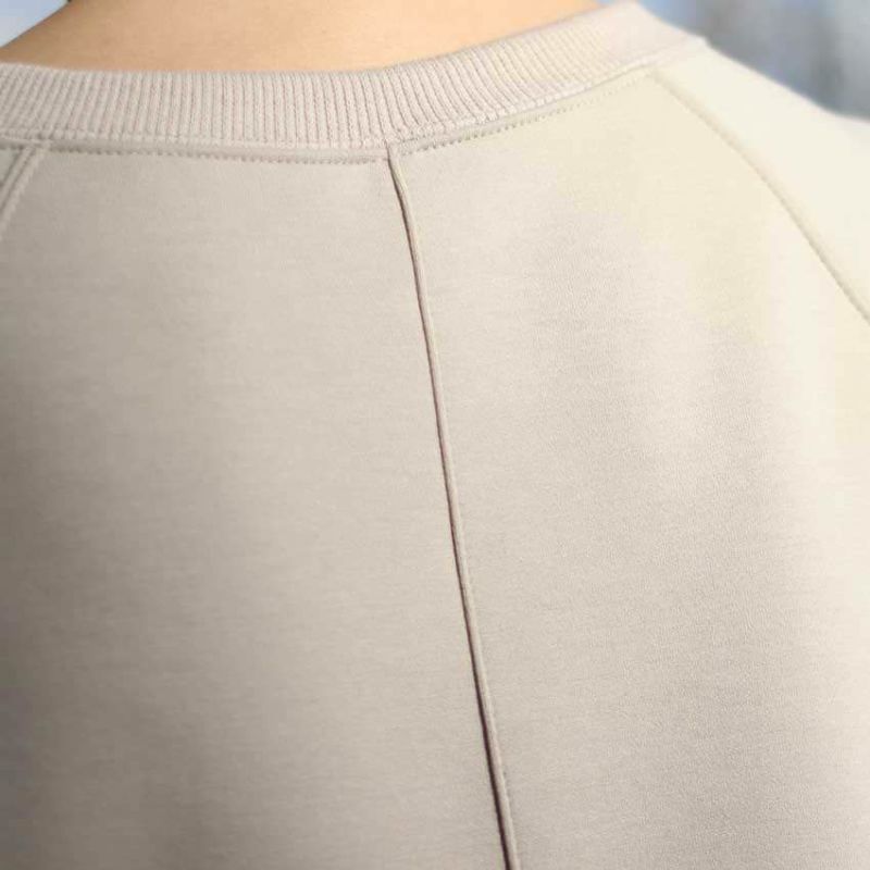 ポンチ素材の適度な光沢とハリが、スウェットでもカジュアルになりすぎないのが特徴です。
