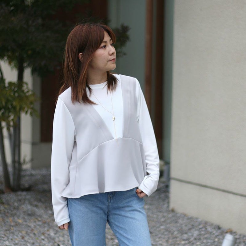trois/トロアが手掛けたレイヤード風の切替カットソー。