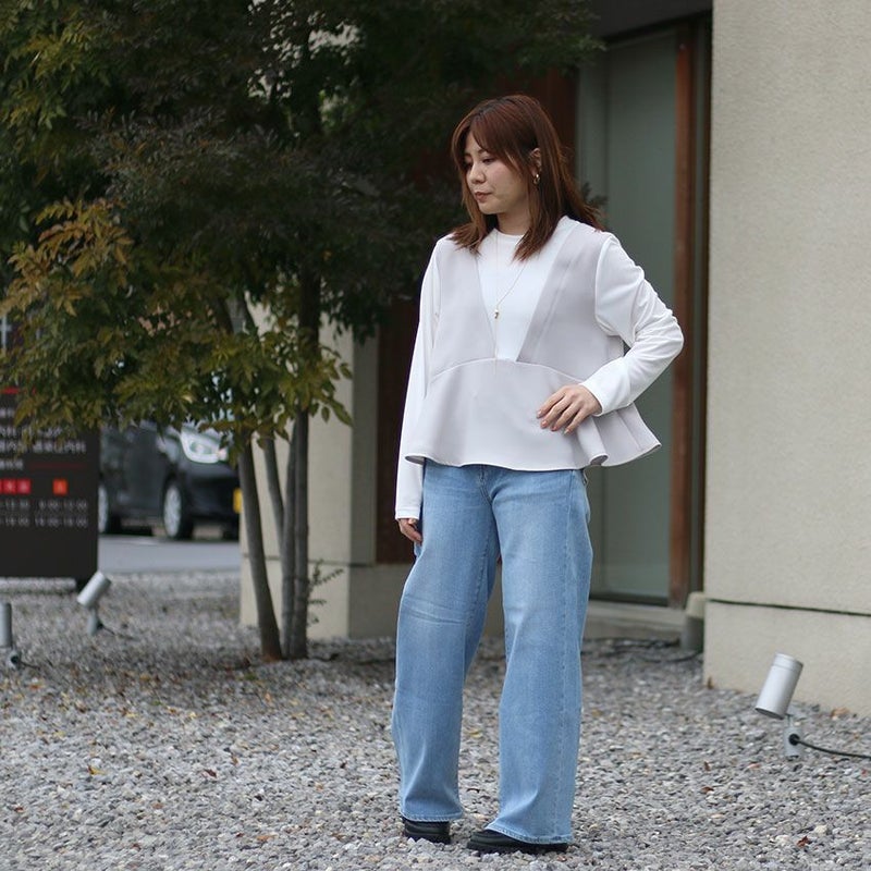 体のラインを拾いにくく、ベーシックな袖の作りでスマートに着用いただけます。