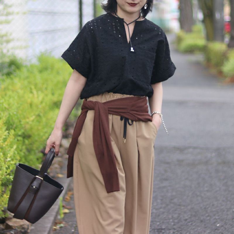 パッチポケットブラウスはボトムスを選ばない丈のバランスで着回しのしやすい一枚。