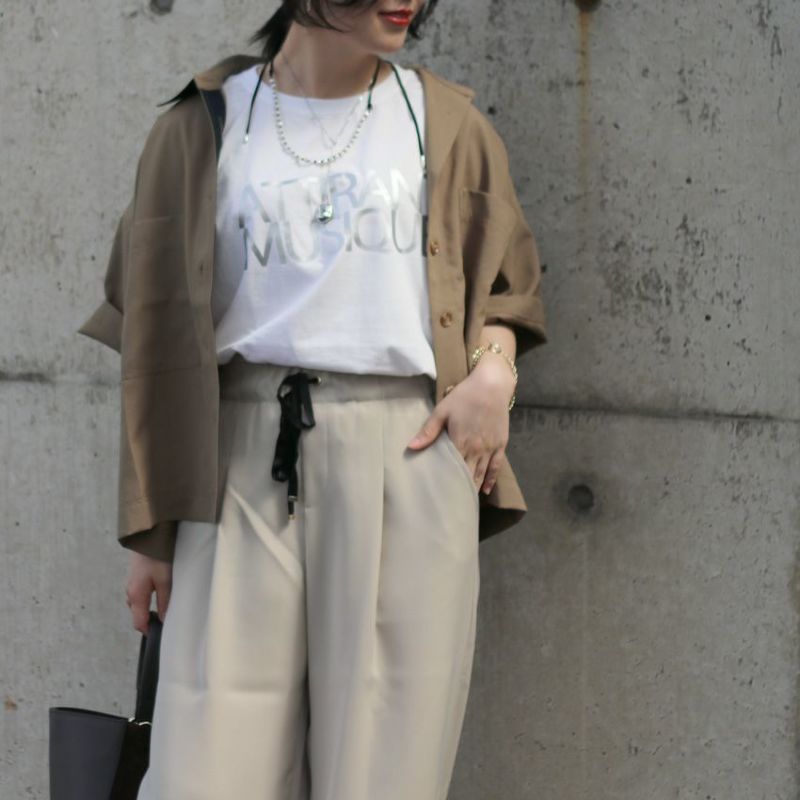 カジュアルコーデにはもちろん、きれいめコーデのハズしアイテムとしても活躍する、ワードローブに1枚は持っておきたい万能Tシャツです。
