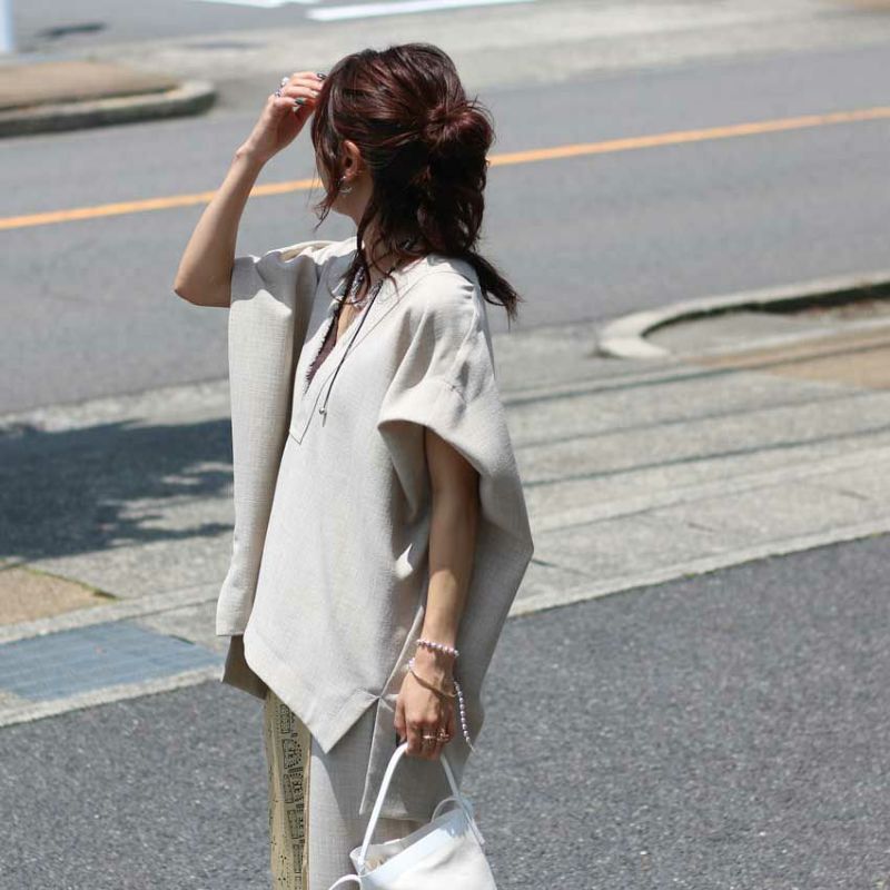 ・麻のようなナチュラル感と、ドライな風合いの生地。