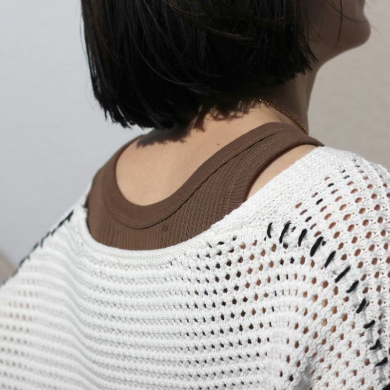 見頃はメッシュ編みで仕上げた清涼感のあるテキスタイル。