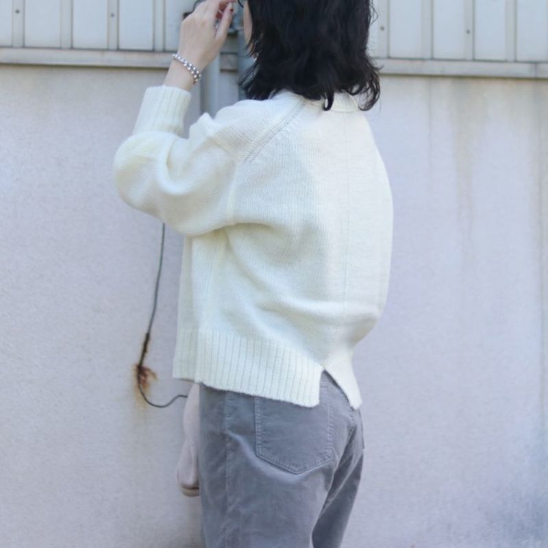 アクセントカラーの刺繍ロゴが、さりげなく存在感を放つ上品なウールニット。