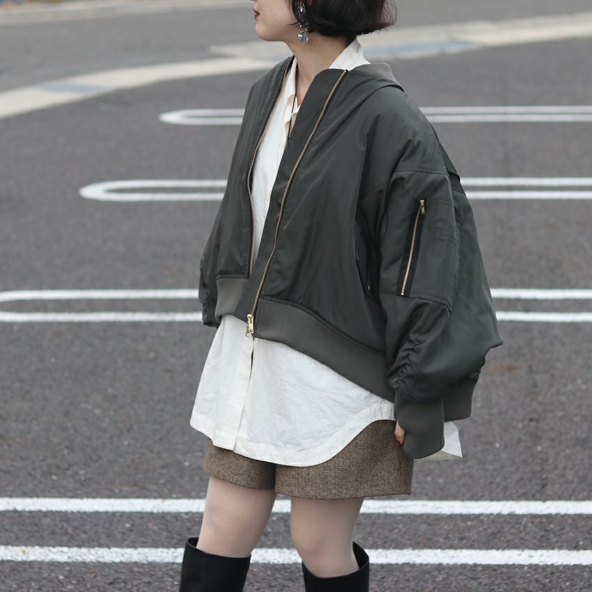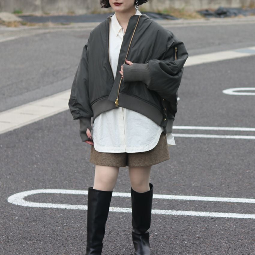 他の画像を見る trois/トロワ ポリエステルツイル ポンチョライクMA-1 T256-83060 ブルゾン ミリタリー グレー カーキ ¥ 37,400 ¥ 26,180 税込 お気に入りに登録する