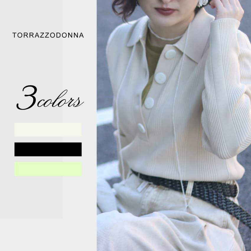 他の画像を見る TORRAZZO DONNA/トラッゾドンナ リブ編みポロニットトップス 6262-462 ライトベージュ ブラック ライム ¥ 15,400 ¥ 10,780 税込 お気に入りに登録する