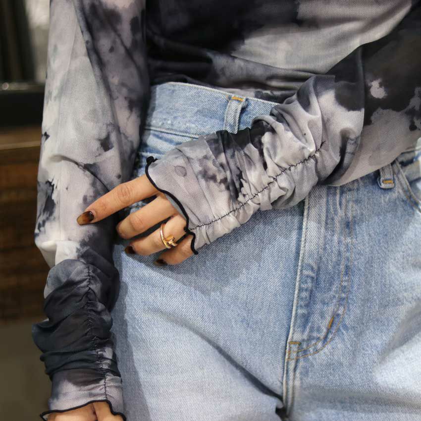 他の画像を見る le vent souffle/ルヴァンスフル 袖コンシャスシアートップス(ハイネック)25S-C072 シアートップス インナートップス マーブル柄 柄トップス タイトインナー 透け感 ¥ 4,400 税込 お気に入りに登録する