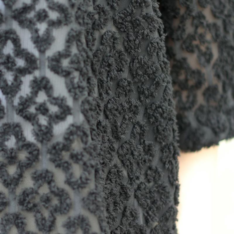 透け感のあるポリエステル生地に、ふんわりと立体感のあるフラワーモチーフを織り込んだ特別な一枚です。