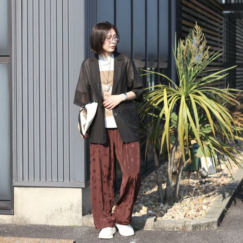 身幅はありすぎず、細すぎずに、着丈はハーフ丈でスタイリッシュなシルエットが叶う1着。