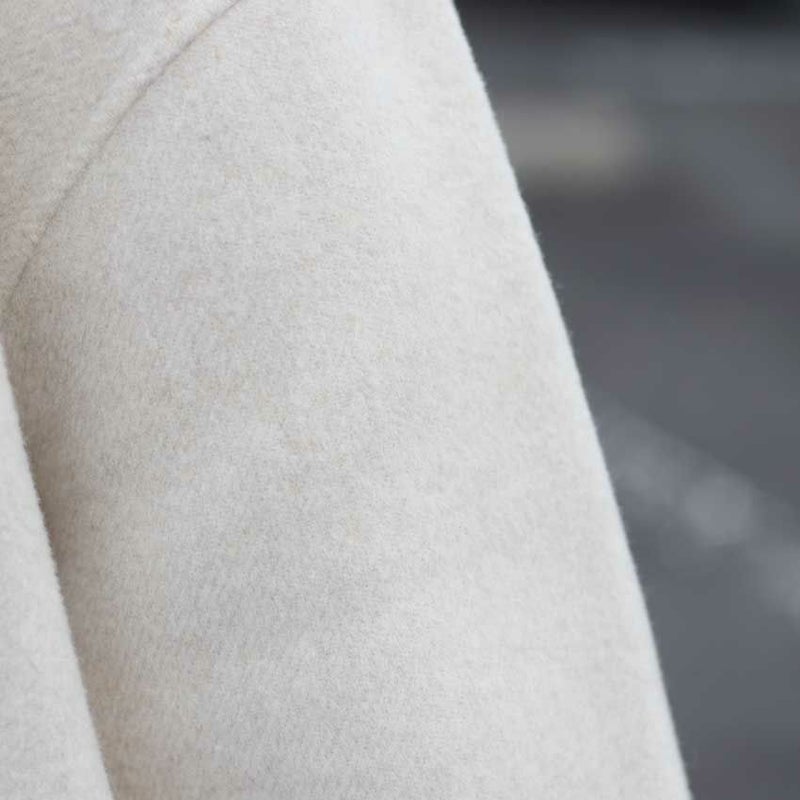 しなやかな膨らみと上品な光沢をまといながら、羽織った瞬間に驚くほど軽い着心地が特徴です。