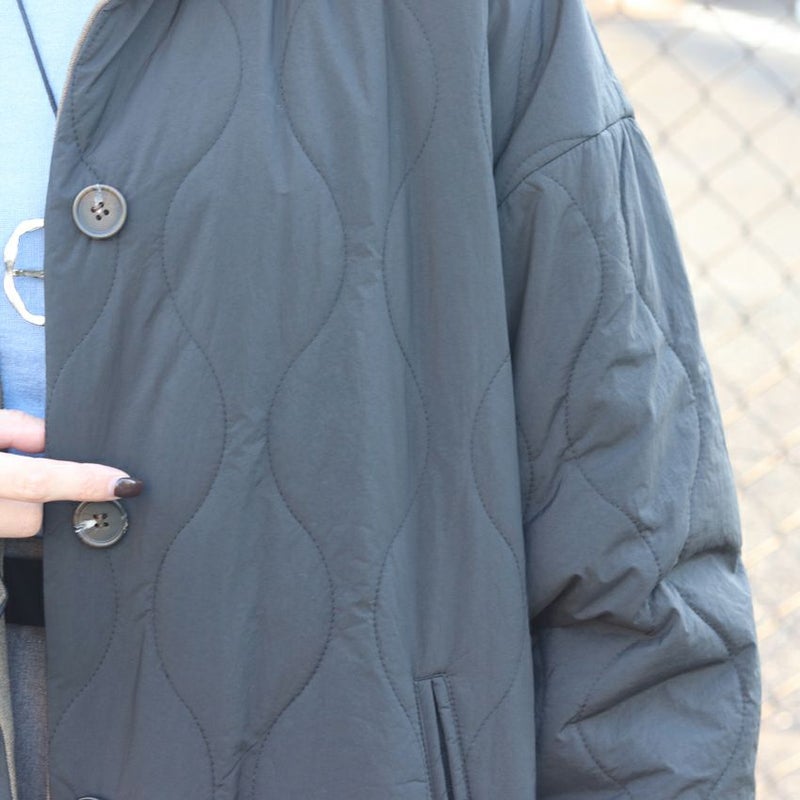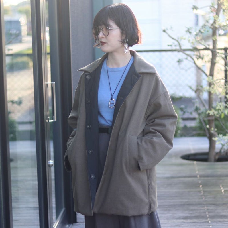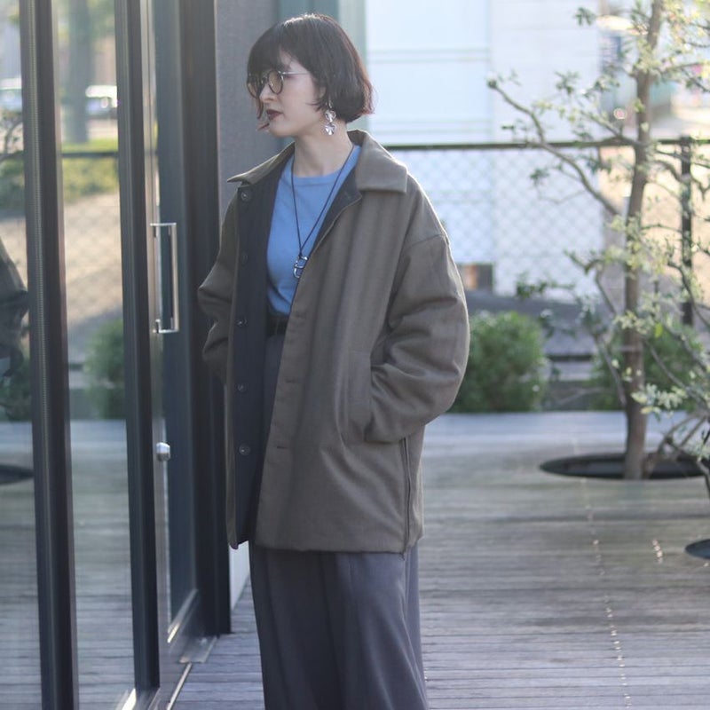 ステンカラーの中綿ジャケットは、リバーシブル仕様で2WAYの着こなしが楽しめる万能アウター。