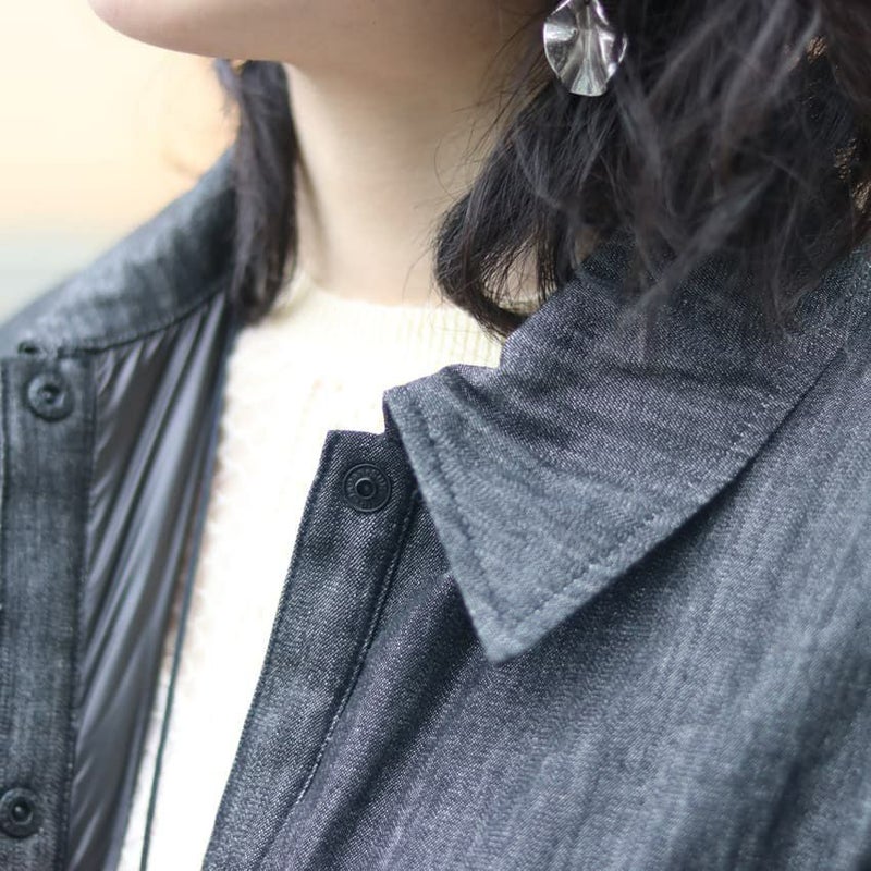 軽やかに羽織れるライトオンスデニムに、ほんのり暖かい中綿をプラス。