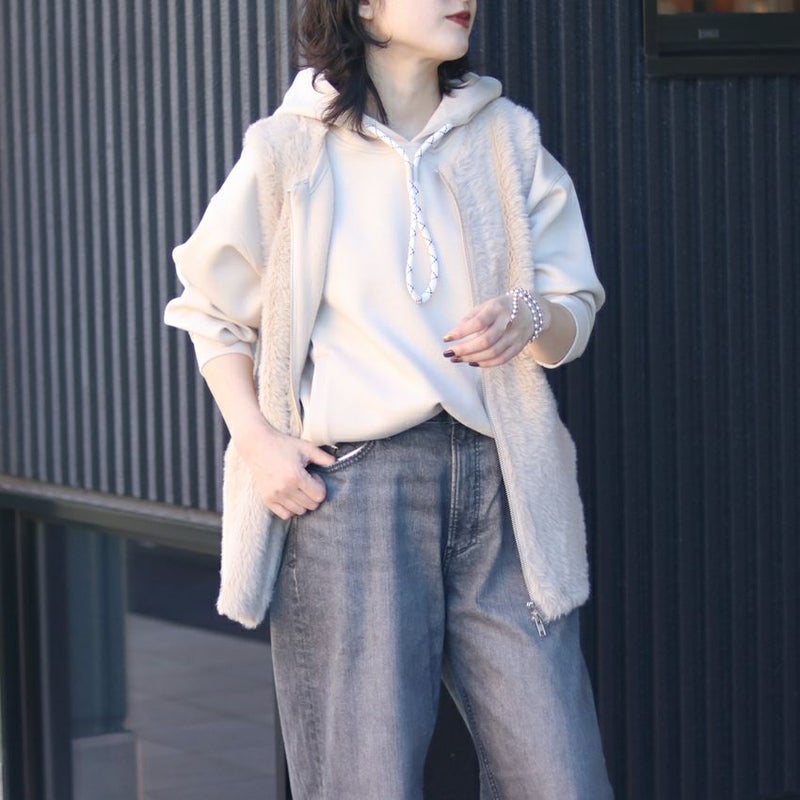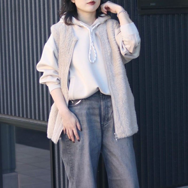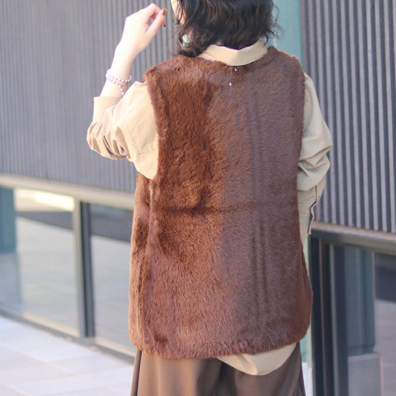 思わず触れたくなるほど柔らかいエコファーを使用したジレです。